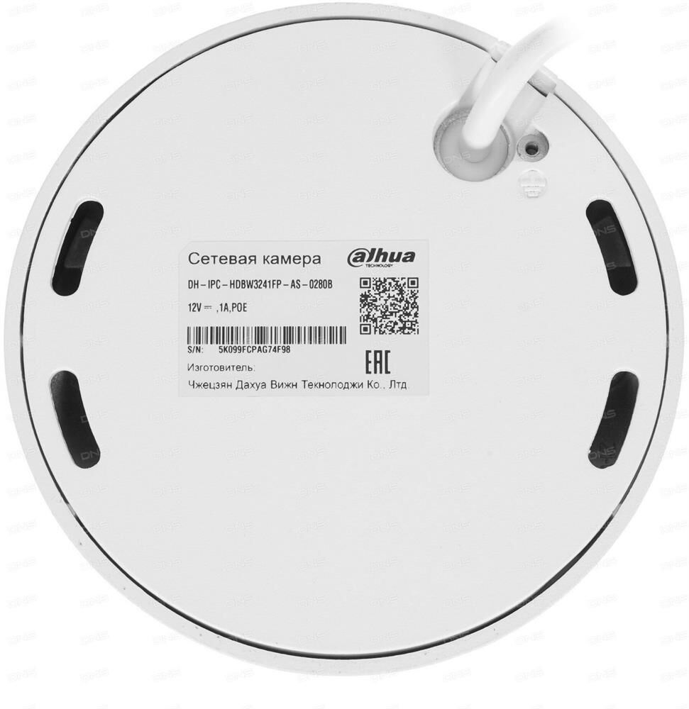 DAHUA Камера видеонаблюдения IP DH-IPC-HDBW3241FP-AS-0280B, 1920х1080 pix, 2.8 мм, белый