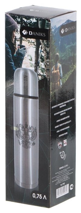 Бренд Daniks Страна продавца Китай Тип классический Объем, л 0.75 Материал корпуса сталь Особенности крышка-чашкакнопка-клапан Материал колбы сталь Сохраняет тепло до, часов 24 Сохраняет холод до, часов 24 Тип горловины узкая Цвета серебристый