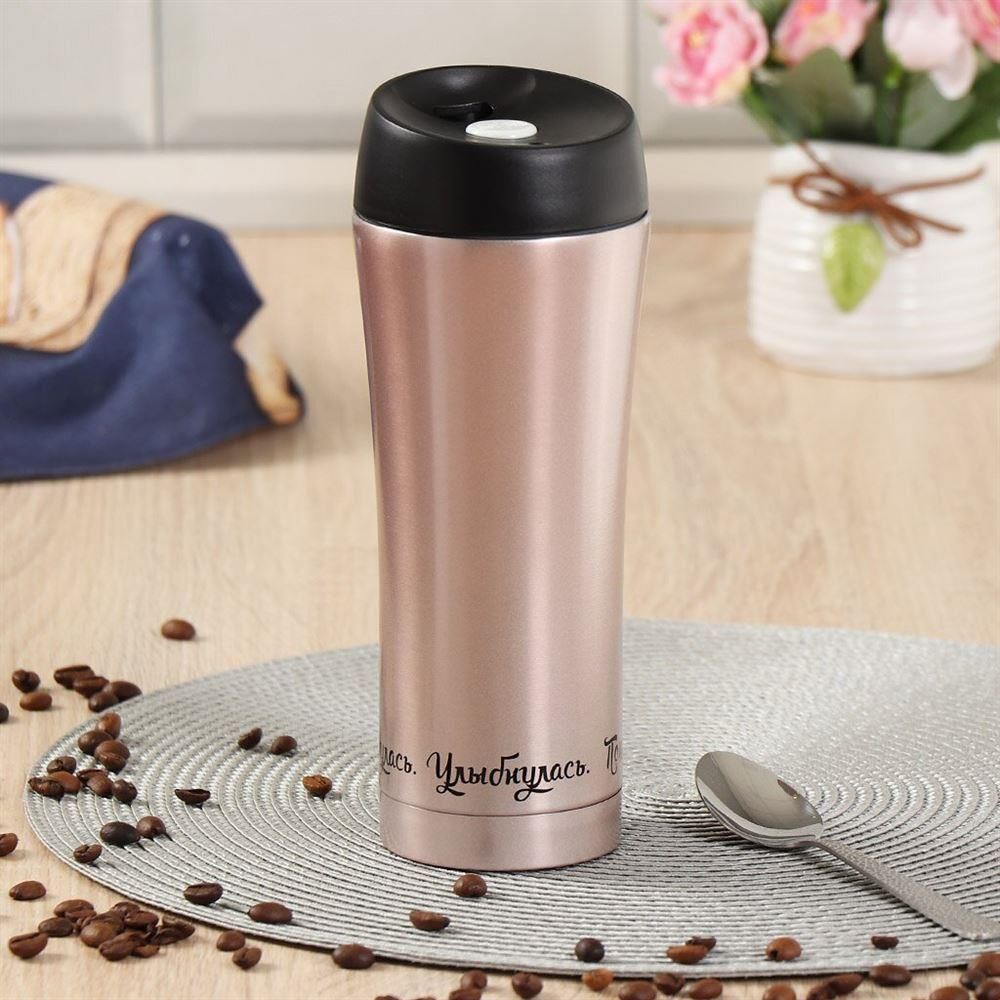 Термокружка нерж, 0.45 л, узк.горл, Женский стиль 2, колба нерж