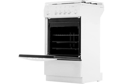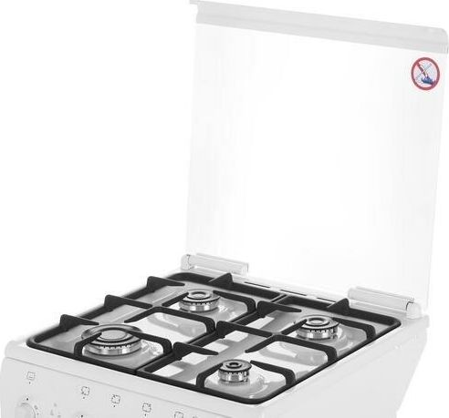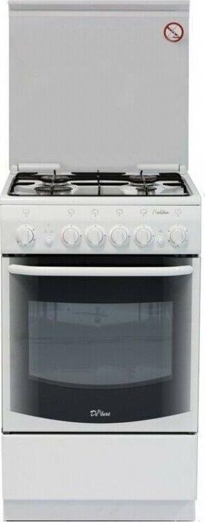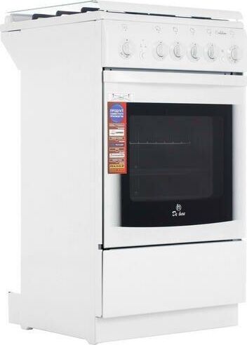 Габариты 850*500*500 Вес, кг - 38 Основные характеристики варочной поверхности: Электророзжиг 4 газовые конфорки 1,0/1,75/1,75/3,0 кВт Основные характеристики духового шкафа: Газ-контроль Терморегулятор Освещение Механический таймер Объём духовки 43 л. Комплектация: Большой противень Малый противень Чугунные решетки Решётка для жарки Стеклянная крышка рабочего стола Хозяйственный отсек Техническое описание: Цвет - белый
