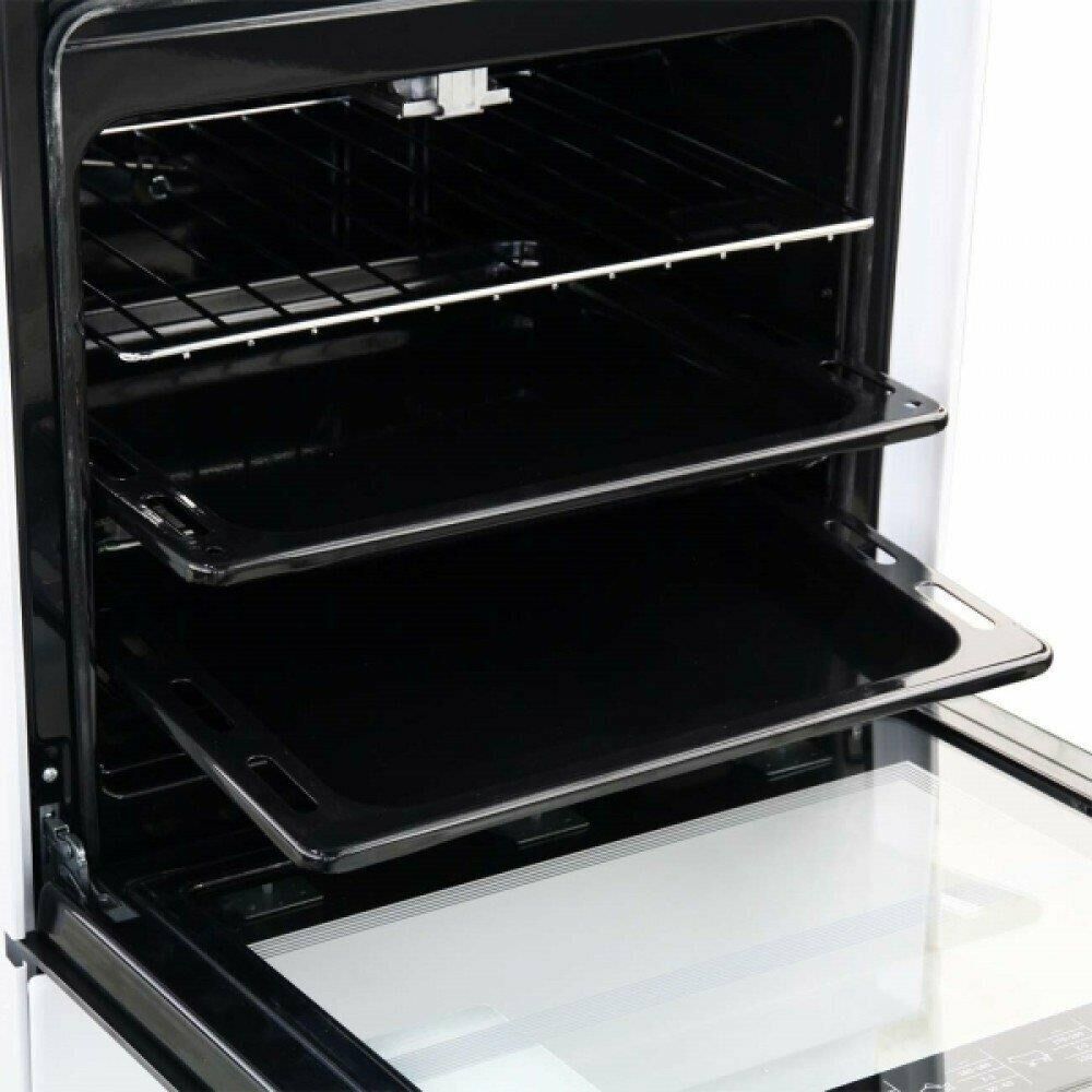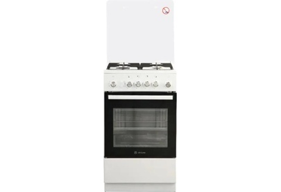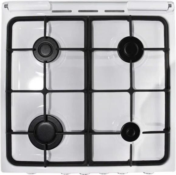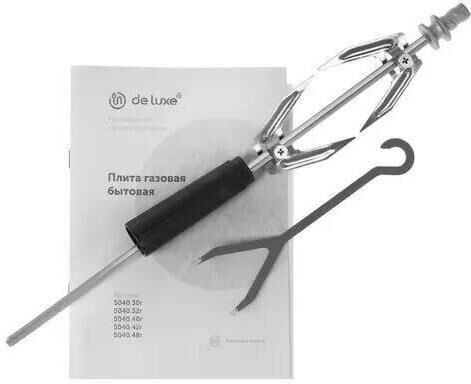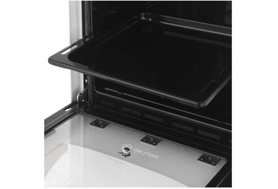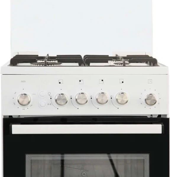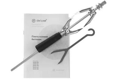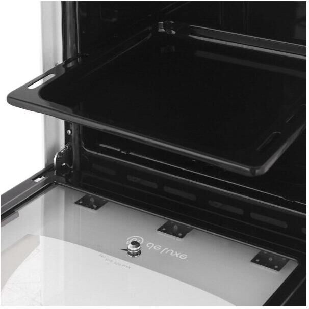Типоразмер 50*50см, эл. розжиг в ручке рабочего стола и духового шкафа, терморегулятор, система "газ-контроль" рабочего стола и духового шкафа, газовый гриль, вертел с электр. приводом, таймер, подсветка, чугунная решётка
