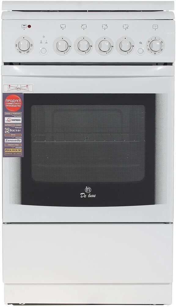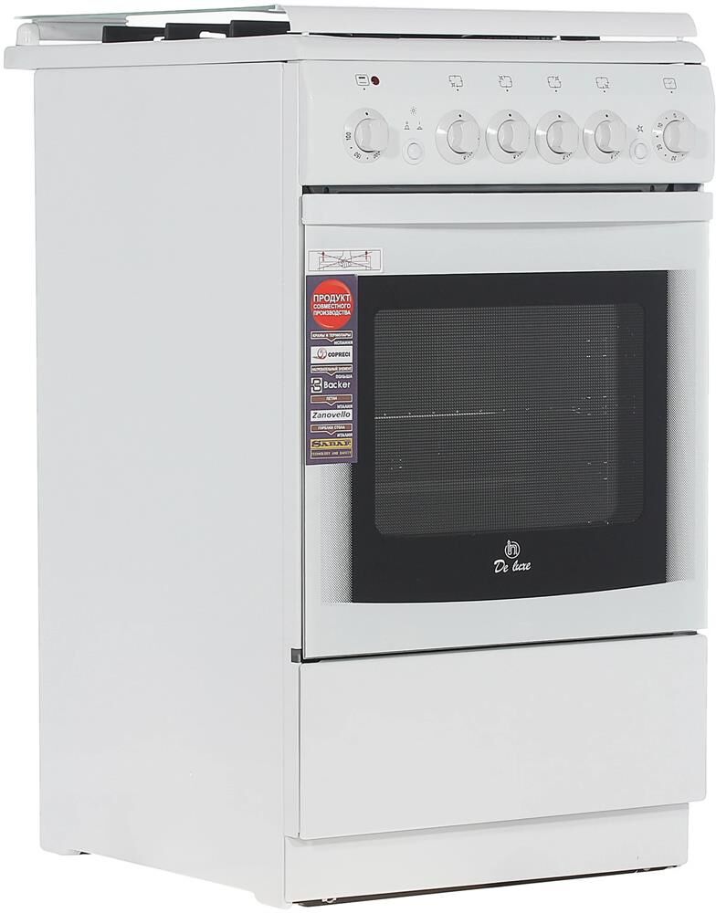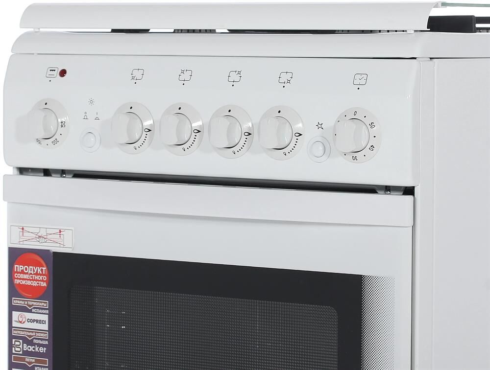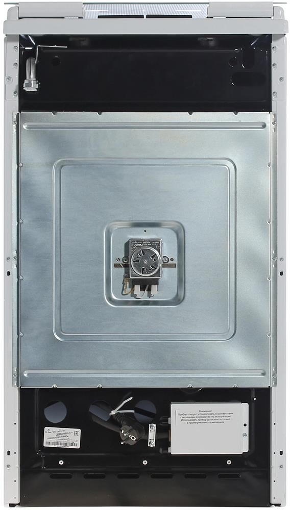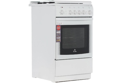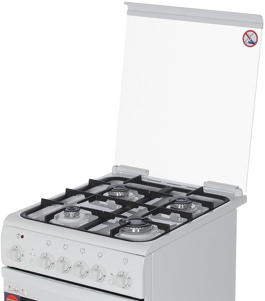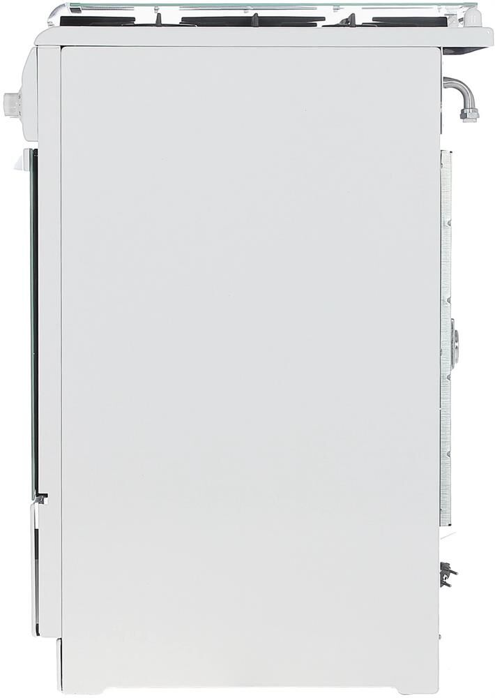 Габариты 850*500*600 Вес, кг - 37 Объём духовки 54 л. Основные характеристики варочной поверхности: Электророзжиг 4 газовые конфорки 1,0/1,7/1,7/3,0 кВт Основные характеристики духового шкафа: Электрическая духовка Нижний ТЭН - 1,2 кВт ТЭН верхний/гриль - 0,8 кВт/1,8 кВт Терморегулятор Освещение Вертел Гриль Механический таймер Комплектация: Большой противень Малый противень Решётка для жарки Чугунная решётка Стеклянная крышка рабочего стола Хозяйственный отсек Техническое описание: Цвет - белый