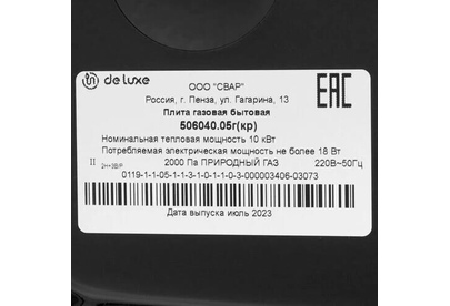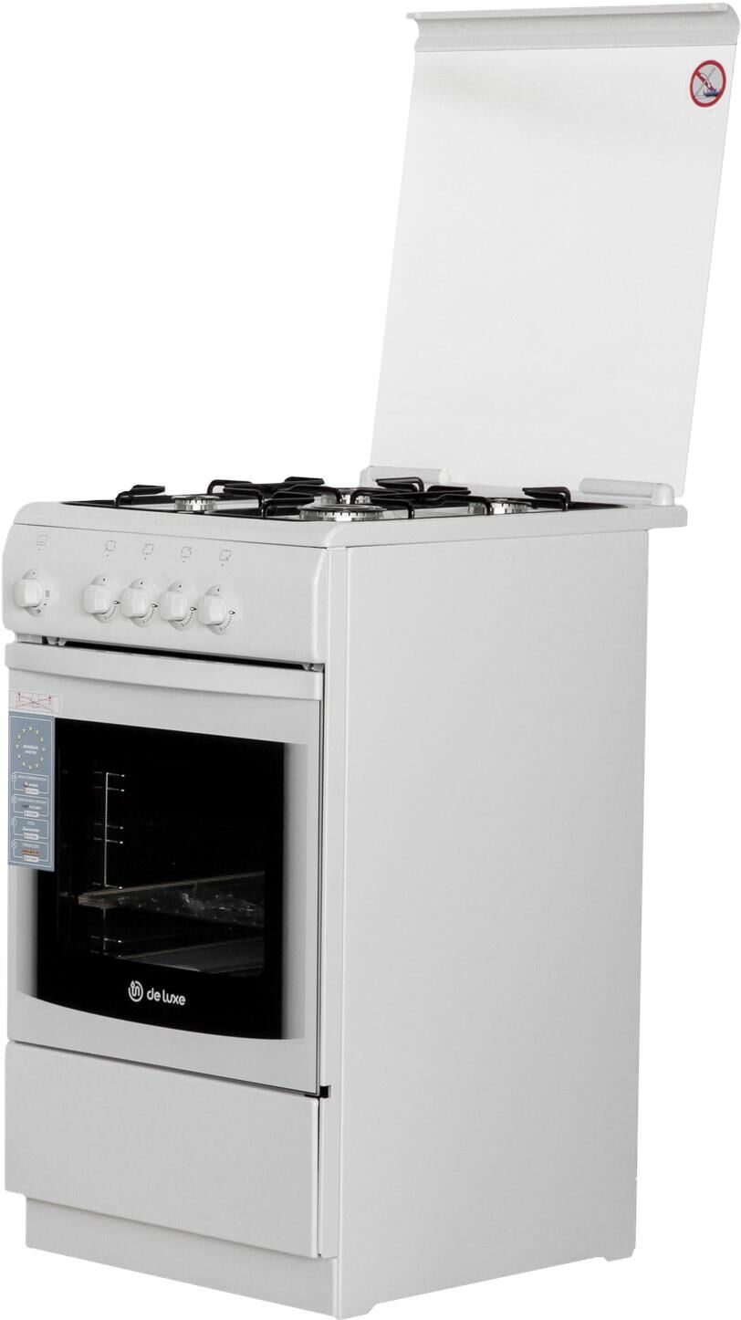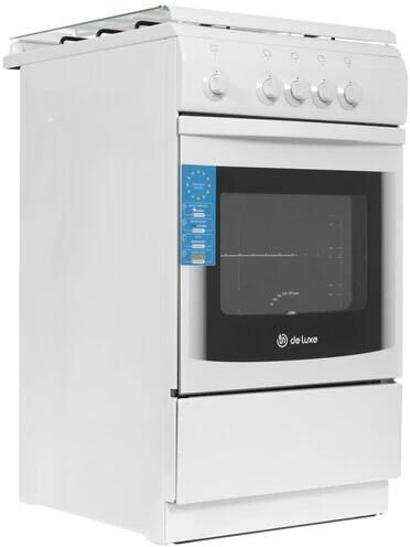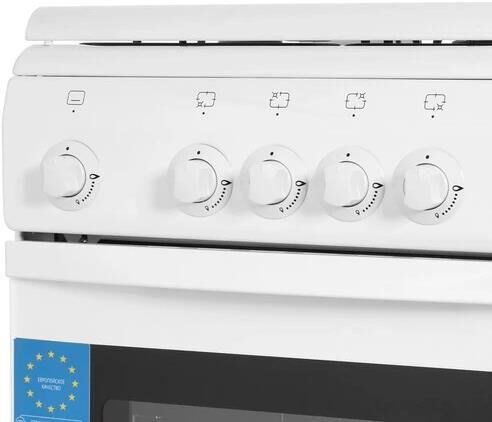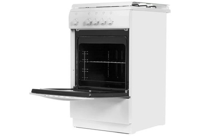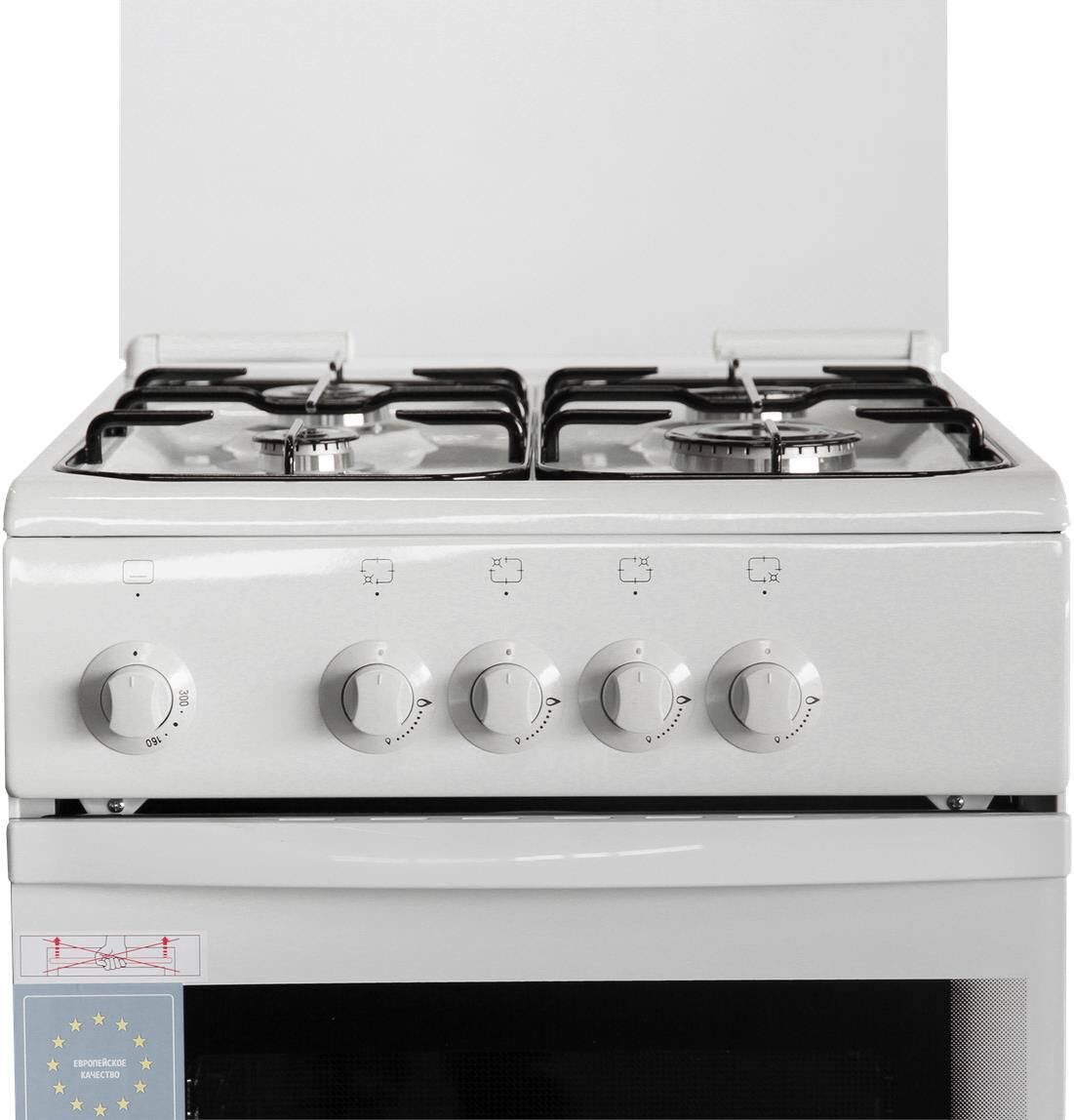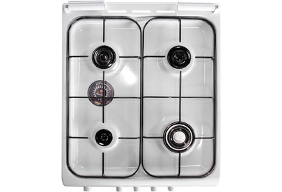 Габариты 850*500*600 Вес, кг – 35 Объём духовки 54 л. Основные характеристики варочной поверхности: 4 газовые конфорки 1,0/1,7/1,7/3,0 кВт Основные характеристики духового шкафа: Газ-контроль Комплектация: Большой противень Малый противень Решётка для жарки Эмалированная решётка Стеклянная крышка рабочего стола Хозяйственный отсек Техническое описание: Цвет - белый