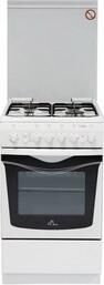 Рабочая поверхность: Рабочий стол: эмаль Количество конфорок: 4 газовые конфорки Мощность конфорок: 1,0/1,75/1,75/3,0 кВт Электроподжиг Газ-контроль Чугунные решётки Духовка: Тип: газовая Объем: 54 л Терморегулятор Электродвигатель с вертелом Электророзжиг Принадлежности: противень (2 шт.) решетка духовки Дополнительная информация: Габариты: 85х50х60 см Механический таймер Хозяйственное отделение - откидная панель