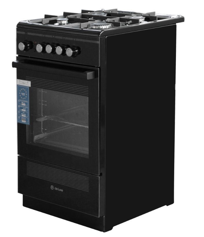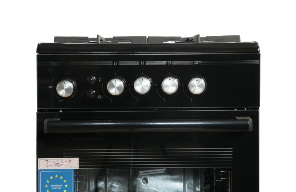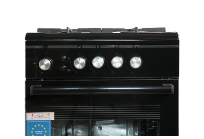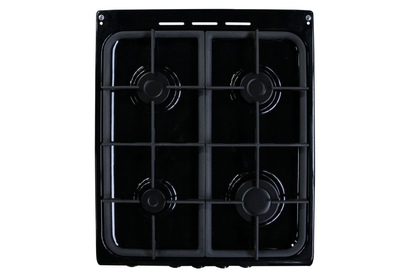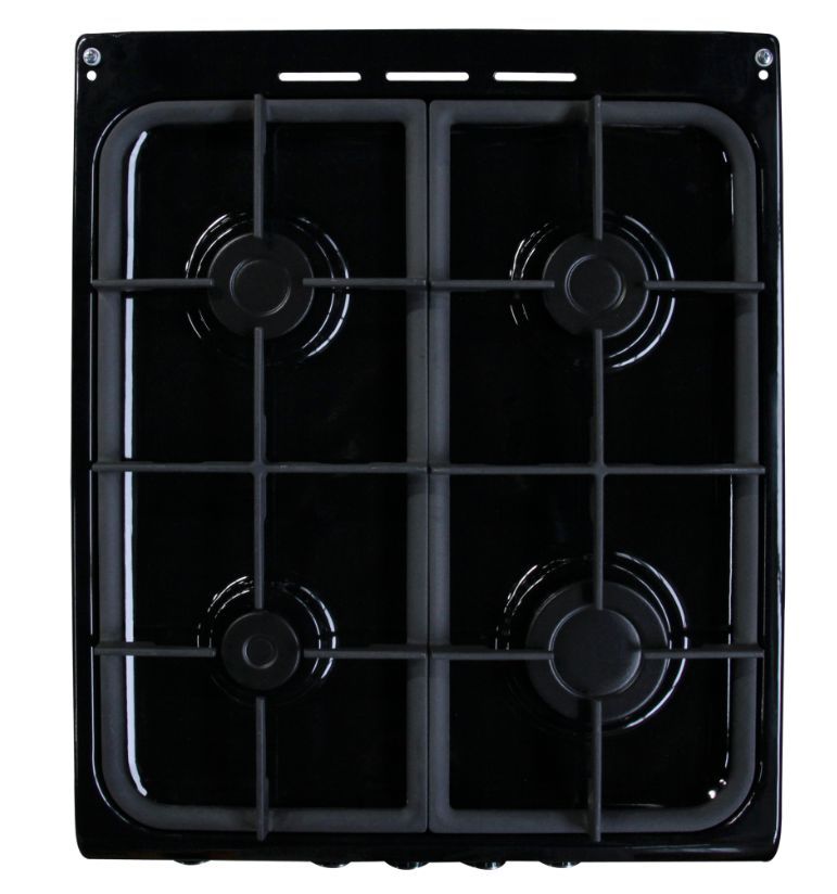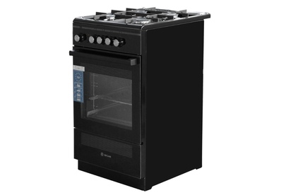 Размеры, мм - высота/ширина/глубина – 850/500/600 * Цвет - черный, стеклянный фасад *Основные характеристики варочной поверхности: 4 газовые конфорки 1,0/1,75/1,75/3,0 кВт. Электророзжик раб.стола * Основные характеристики духового шкафа: Горелка основная 2,5 кВт с УКП. Газ-контроль. Объём духовки 54 л. * Чугунная решётка * Хозяйственный отсек *