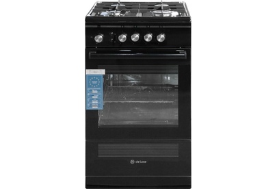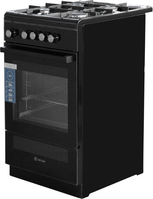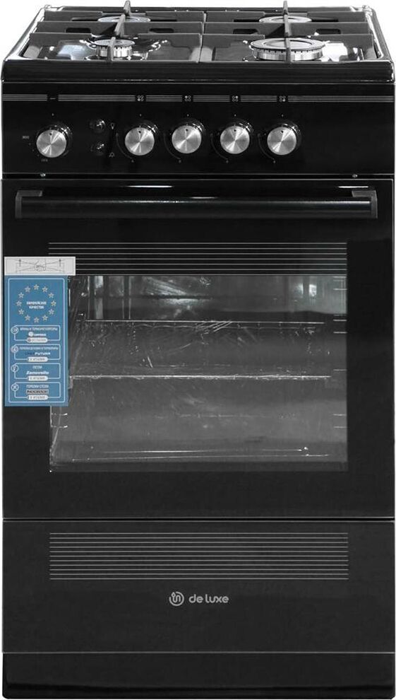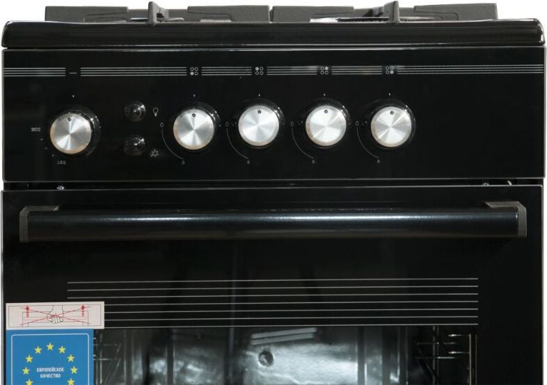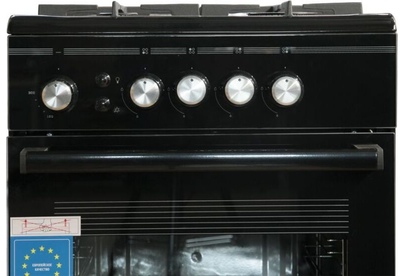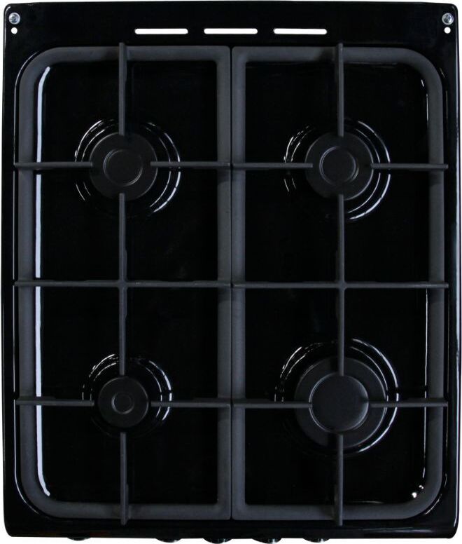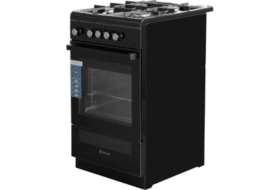 Размеры, мм - высота/ширина/глубина – 850/500/600 * Цвет - черный, стеклянный фасад *Основные характеристики варочной поверхности: 4 газовые конфорки 1,0/1,75/1,75/3,0 кВт. Электророзжик раб.стола * Основные характеристики духового шкафа: Горелка основная 2,5 кВт с УКП. Газ-контроль. Объём духовки 54 л. * Чугунная решётка * Хозяйственный отсек *