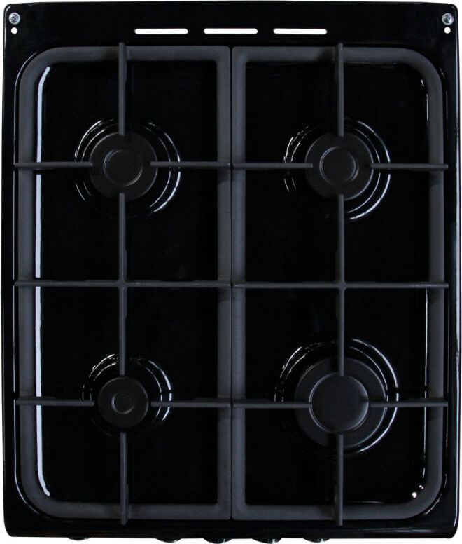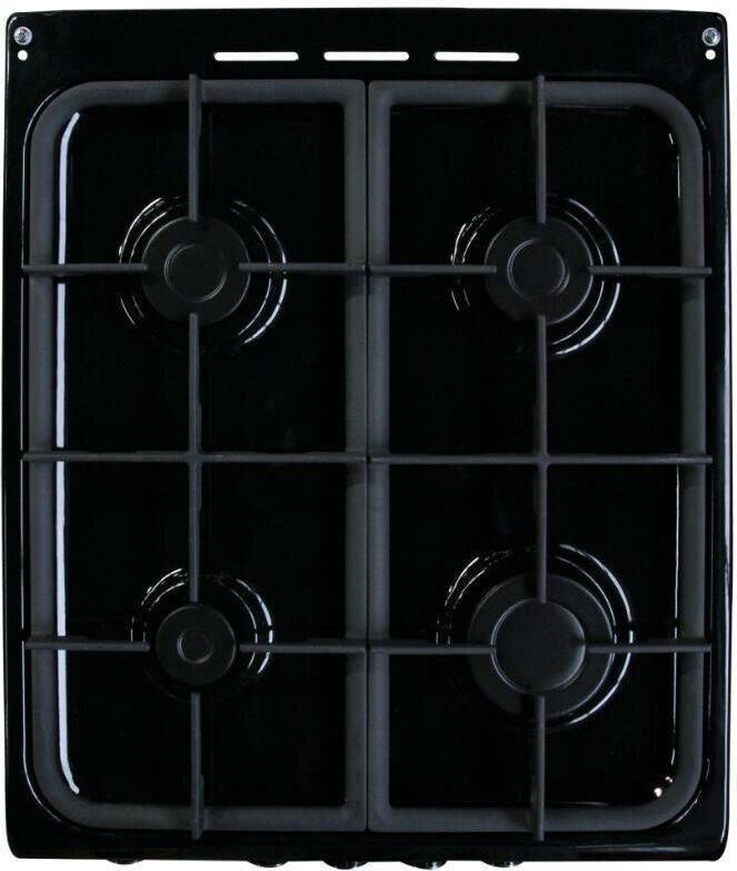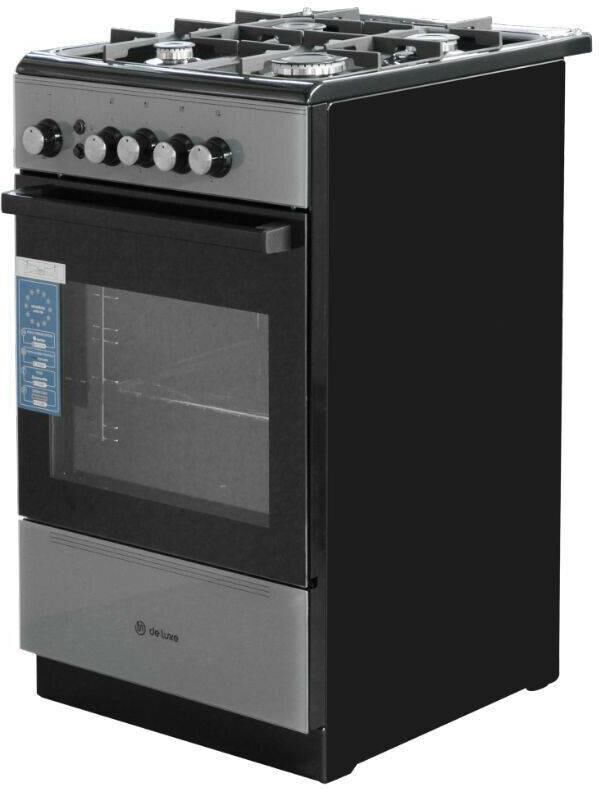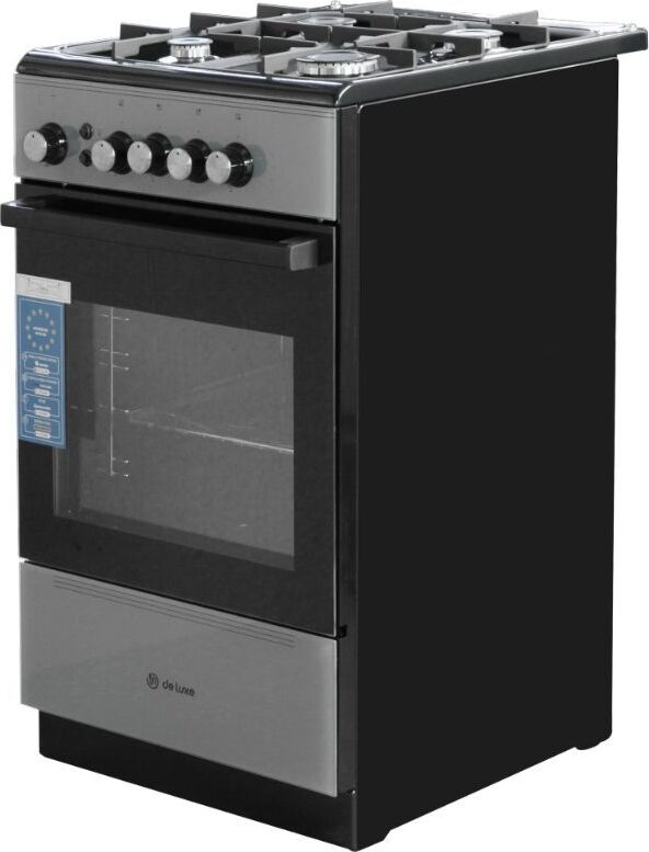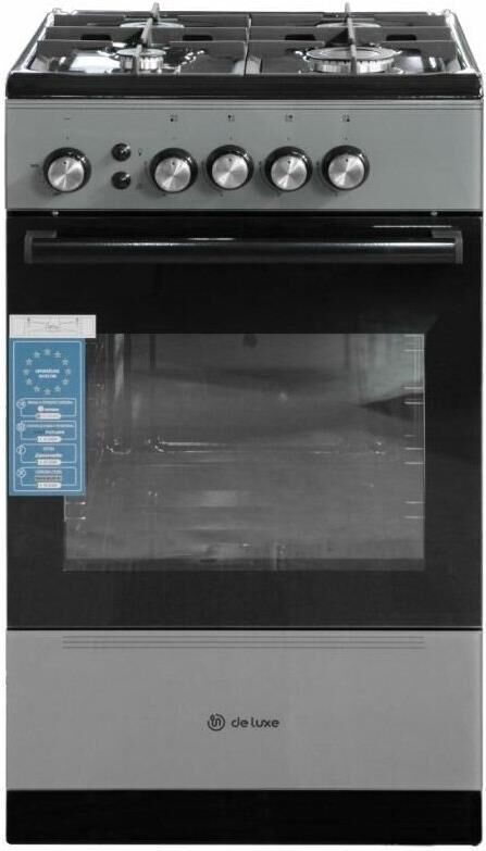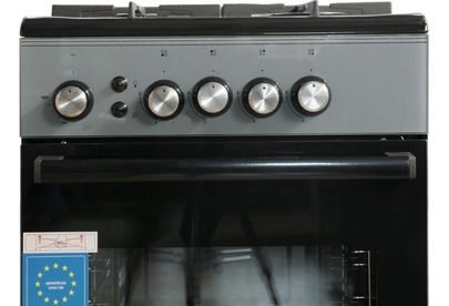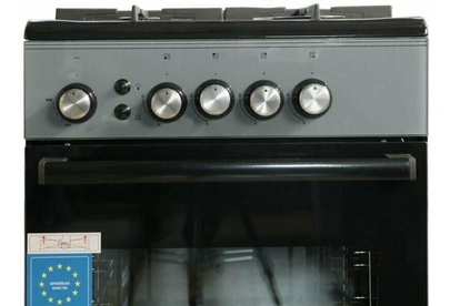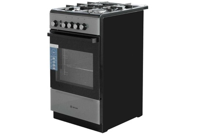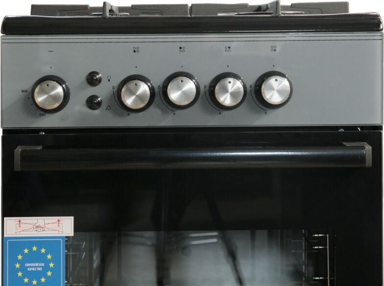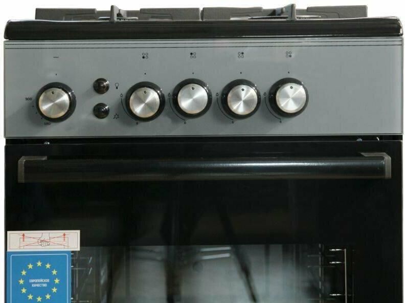 Размеры, мм - высота/ширина/глубина – 850/500/600 * Цвет - серый, стеклянный фасад *Основные характеристики варочной поверхности: 4 газовые конфорки 1,0/1,75/1,75/3,0 кВт. Электророзжик раб.стола * Основные характеристики духового шкафа: Горелка основная 2,5 кВт с УКП. Газ-контроль. Объём духовки 54 л. * Чугунная решётка * Хозяйственный отсек *