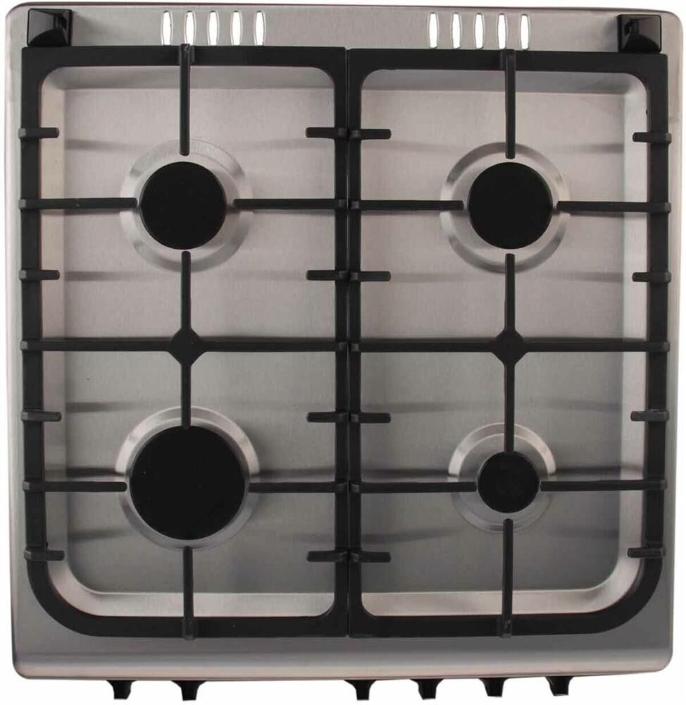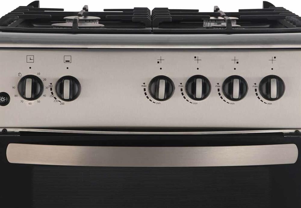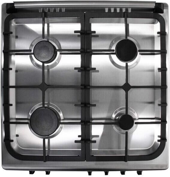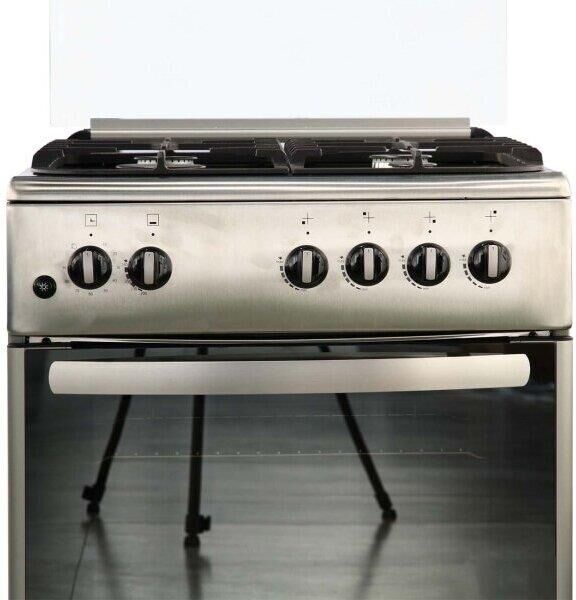 Габариты 850*600*600 Вес, кг - 38 Объём духовки 64 л. Основные характеристики варочной поверхности: Электророзжиг 4 газовые конфорки 0,9/1,70/1,70/2,5кВт Основные характеристики духового шкафа: Газ-контроль Терморегулятор Механический таймер Освещение Комплектация: Большой противень Решётка для жарки Чугунная решётка Стеклянная крышка рабочего стола Хозяйственный отсек Техническое описание: Цвет - нержавеющая сталь