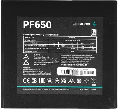 [Блок питания] Блок питания Deepcool ATX 650W PF650 80 PLUS WHITE (20+4pin) APFC 120mm fan 6xSATA RTL