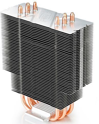 вентиляторов — 1шт, 120мм, 900 — 1500 об/мин; с подсветкой; для ЦП до 150 Вт; основание: с открытыми тепловыми трубками, материал — алюминий/медь; подшипник скольжения; радиатор — алюминий+медь; с тепловыми трубками; питание от МП — 4-pin; высота 154.5 мм