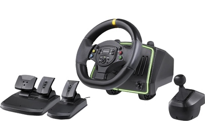 Проводной игровой руль с RGB подсветкой, эффектом вибрации, удобными педалями и рычагом переключения передач. Поддерживаемые платформы: PlayStation® 3, PlayStation® 4, PlayStation® 5, XBOX 360, Android TV box, Nintendo Switch, XBOX One, Xbox Series X/S , ПК (Dinput и Xinput). Руль надежно крепится к столешнице при помощи струбцин.