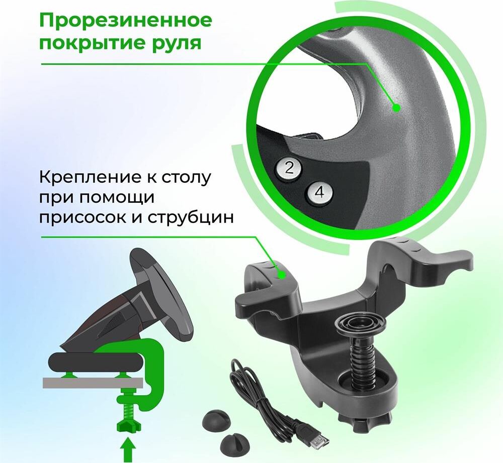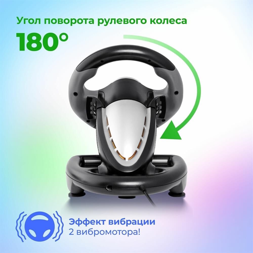 Тип подключения: проводной . Поддерживаемые платформы: ПК Интерфейс: USB Диаметр рулевого колеса: 225 мм. Угол поворота рулевого колеса: 180 ° Тип #