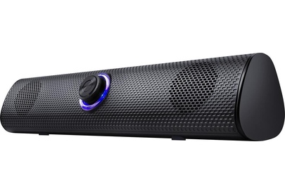 Компактный саундбар с нескользящими ножками под монитор вашего ПК. Регулятор громкости с приятной подсветкой удобно расположен на передней панели.