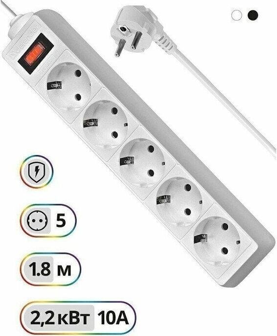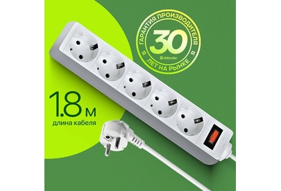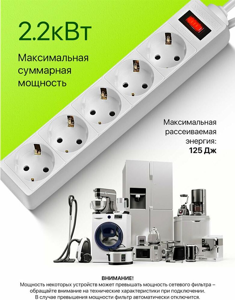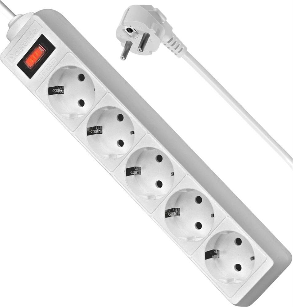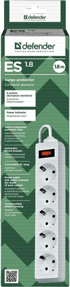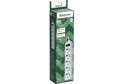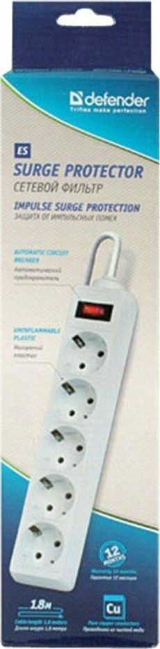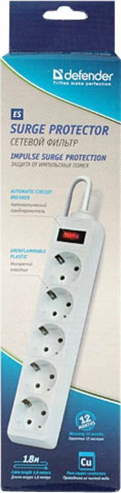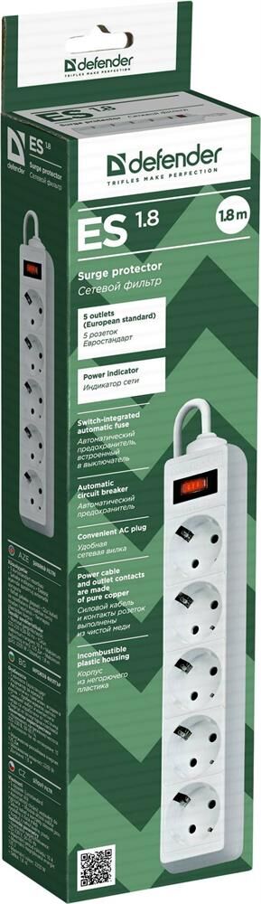 DEFENDER (99-481) ES 1.8 сет.фильтр 5роз - 1,8м - (пакет) - белый (5)