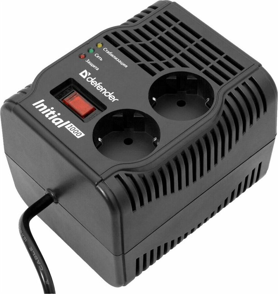 Стабилизатор, максимальная мощность 320 Вт, диапазон входного напряжения 175–285 В, диапазон выходного напряжения 198–242 В, максимальная рассеиваемая энергия 180 Дж, количество розеток с заземлением 2 шт., регулятор напряжения со встроенным сетевым фильтром, защита от перегрузки и перегрева, длина кабеля - 0,6 м.