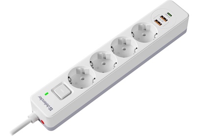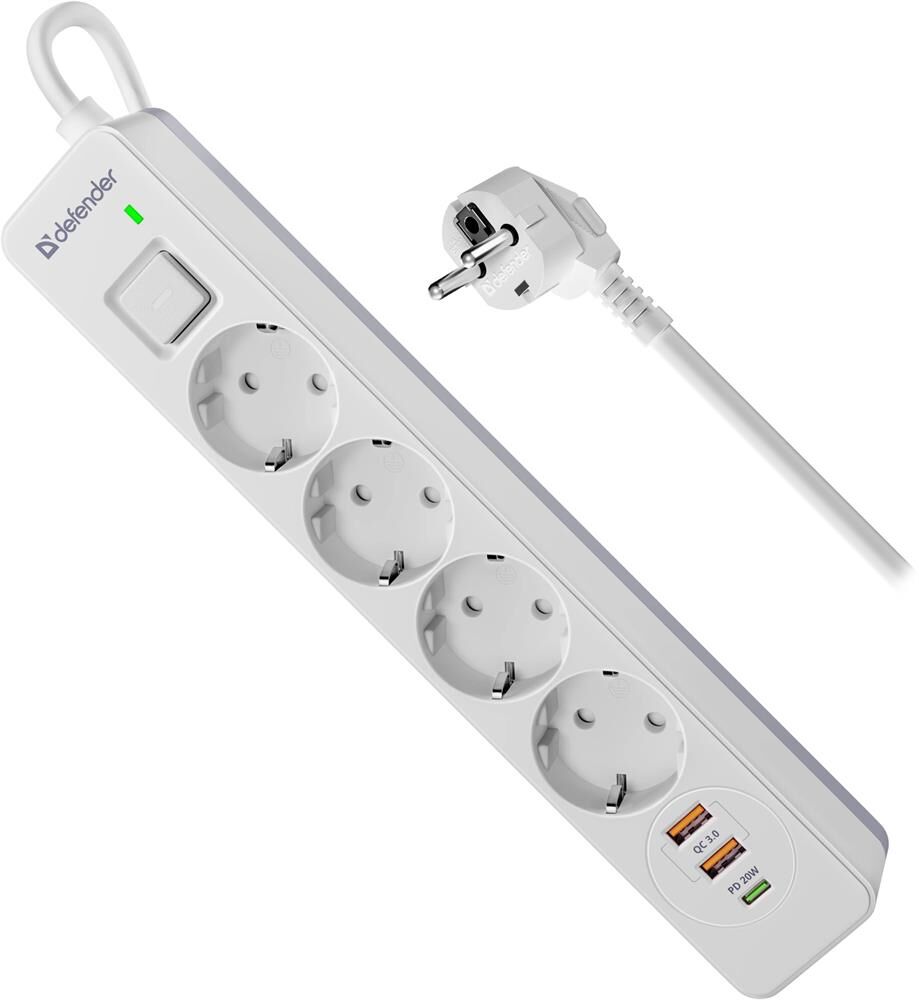 Удлинитель с сетевым фильтром, Номинальное напряжение/частота 230 В / 50 Гц; Максимальная суммарная мощность нагрузки 3680 Вт ;Максимальный ток нагрузки 16 А ;Количество розеток 4 шт. ;Заземление есть; Тип розеток Евростандарт Защитные шторки; Длина 1.5 м Кнопка включения/выключения питания; Защита от перегрузки и короткого замыкания; Отдельный автоматический несгораемый предохранитель Максимальная рассеиваемая энергия 380 Дж; Тип вилки Евростандарт USB-порт для зарядки устройств ; Количество портов USB Type-A 2 шт.