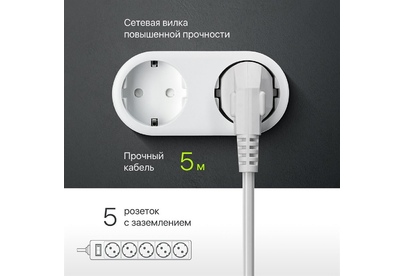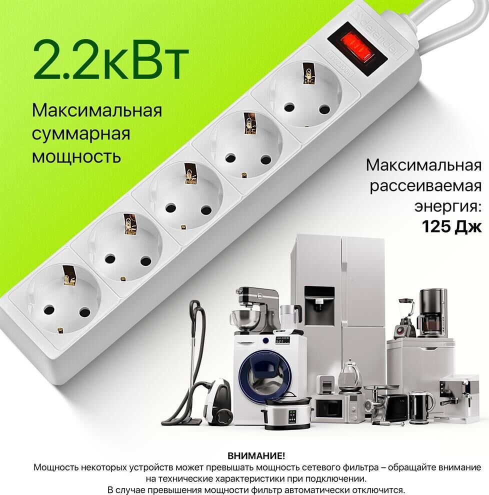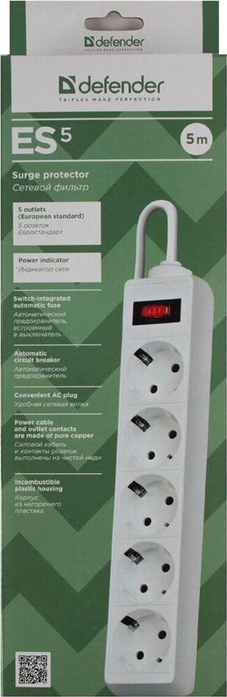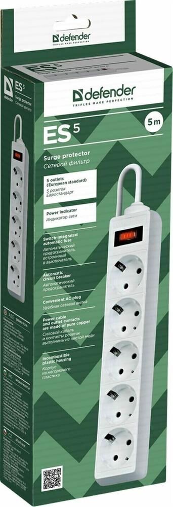 DEFENDER (99483) ES 5.0 сет.фильтр 5роз - 5м - (пакет) белый