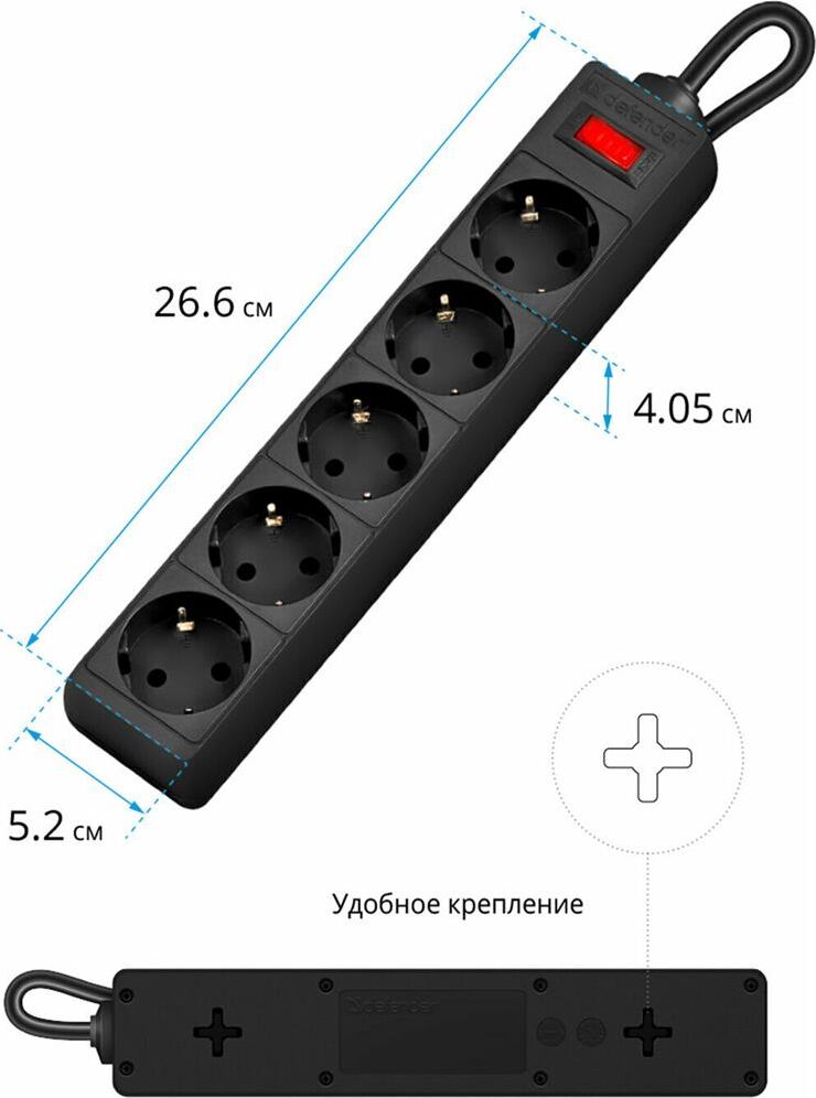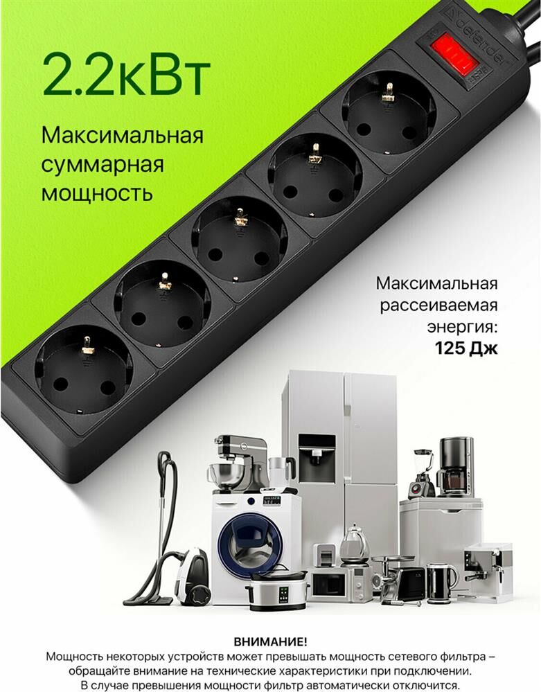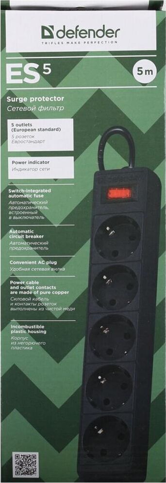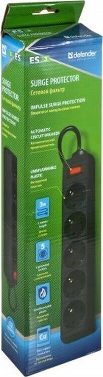 DEFENDER (99486) ES сет.фильтр 5роз - 5м - (пакет) черный