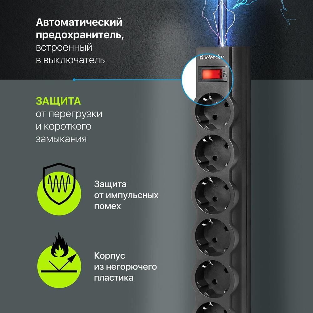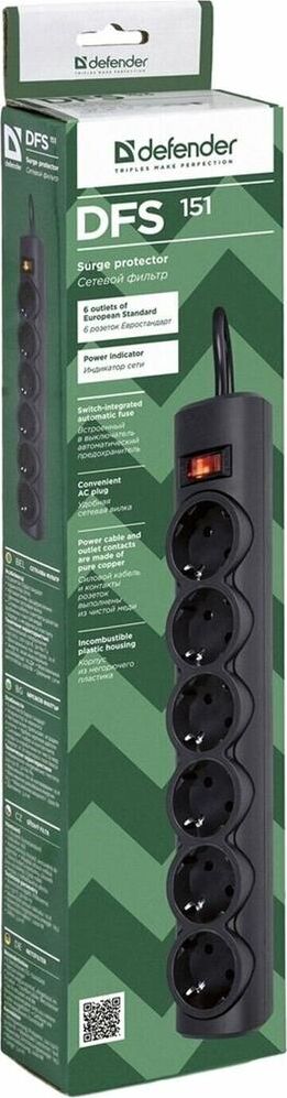 DEFENDER (99494) DFS 151 сет.фильтр 6роз - 1,8м - черный