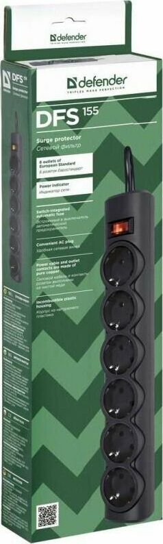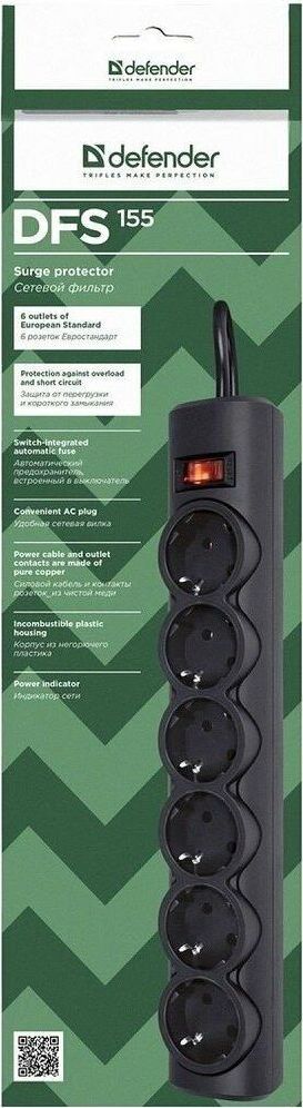 DEFENDER (99496) DFS 155 сет.фильтр 6роз - 5м - черный