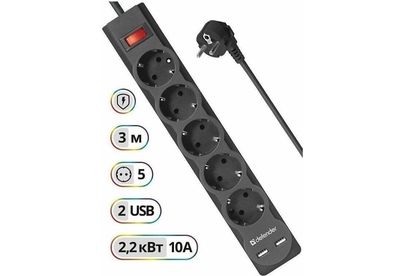 Максимальная рассеиваемая энергия: 220 Дж, Защищаемые цепи: фаза-ноль, Защита от перегрузки и короткого замыкания: автоматический несгораемый предохранитель, встроенный в выключатель, Кол-во розеток: 5 шт.,Розетки с заземлением: 5 шт., Номинальное напряжение/частота: 230 В / 50 Гц, Максимальная суммарная мощность нагрузки: 2200 Вт, Максимальный ток нагрузки: 10 А, Длина: 3.0 м, Напряжение на USB-портах: 5 В, Кол-во USB-портов для зарядки: 2 шт., Максимальный ток USB-порта: 2.1 А, Токовая защита USB-портов, USB-порт для зарядки устройств, Крепление на стену.