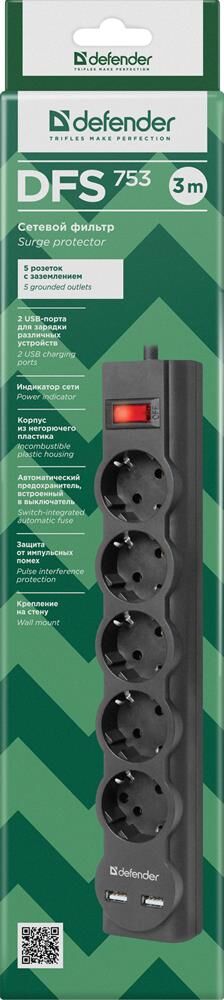 DEFENDER (99753) DFS 753 3 м, 5 розеток