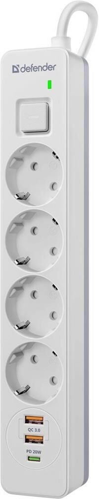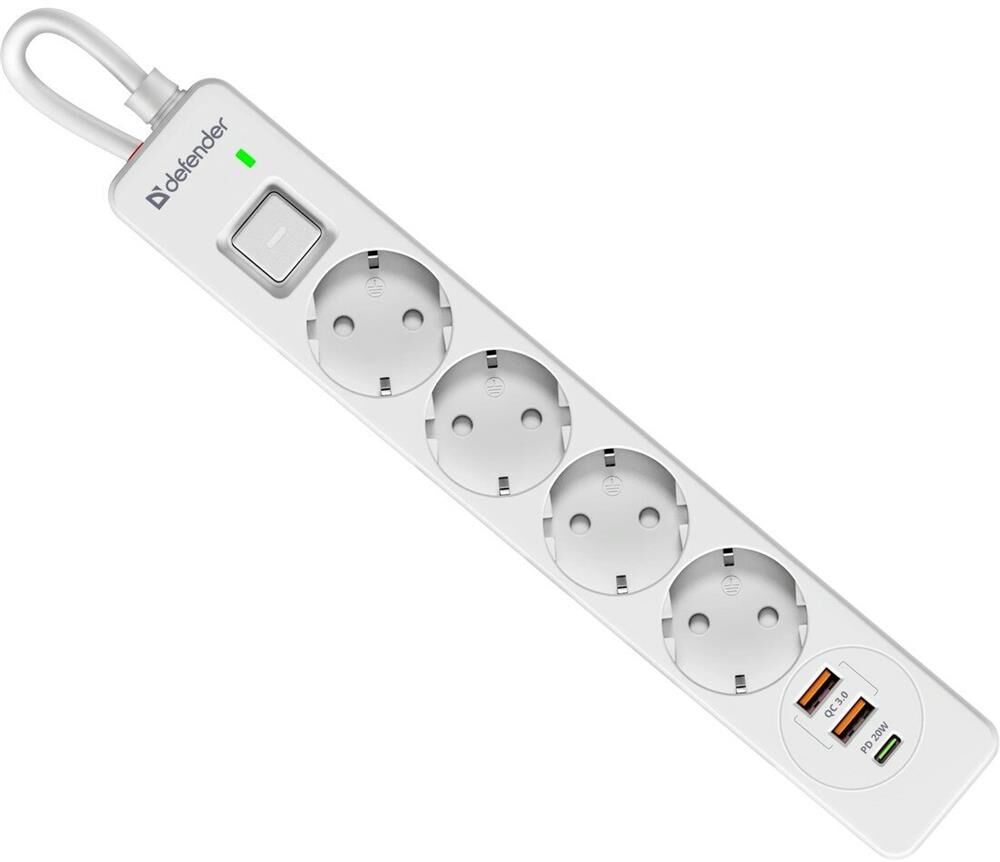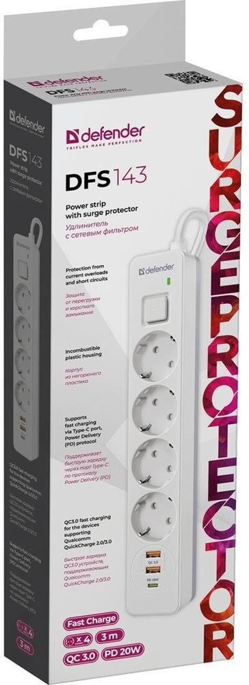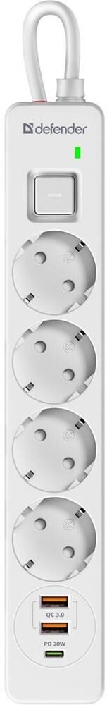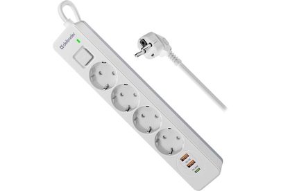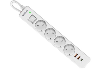 [Сетевые фильтры] Defender Удлинитель с сетевым фильтром DFS 143 3 м,белый,4розетки,USB+TypeC [99434]