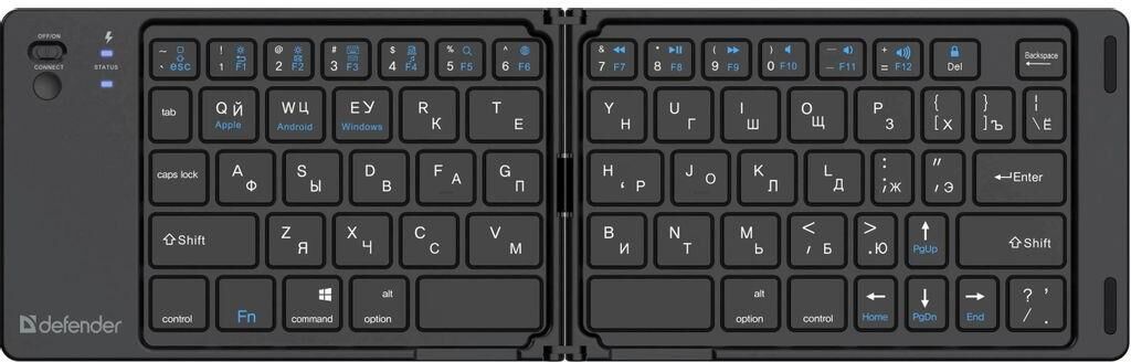Интерфейс: USB. Тип беспроводного соединения клавиатуры: Bluetooth. Обычная/тонкая: тонкая(slim). Форма клавиатуры: изогнутая форма. Возможность подзарядки: от базы для подзарядки. Для ноутбуков: подходит. Клавиатура с русскими буквами: ДА. Дизайн клавиш: квадратные. Длина кабеля: 0.5. Радиус действия клавиатуры: 10. Тип элементов питания: собственный Li-ion аккумулятор. Максимальное время работы: 24 часа. Цвет английских букв: белый. Цвет русских букв: белый. Материал корпуса: пластик. Вес: 0.14. Тип соединения: беспроводная. Количество клавиш: 66. Габариты упаковки (ед) ДхШхВ: 0.17x0.104x0.025. Вес упаковки (ед): 0.17. Страна производитель: Китай. Гарантия: 6 мес.. Размеры клавиатуры (ШхВхТ): 294.5 х 9.2 х 92 мм. Цвет: черный. Конструктив клавиатуры: компактная, низкопрофильная, островная. Особенности клавиш: бесшумные клавиши, клавиша функции (Fn). Конструктивные особенности: складная конструкция. Цвет английских букв: белый. Особенности: тонкая(slim), для ноутбуков. Конструктив: эргономичной формы. Цвет р