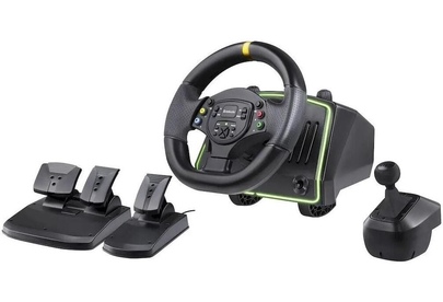 Количество кнопок: 20. Подрулевые переключатели: есть. Виброотдача: есть. Педали: газ, тормоз и сцепление. Рычаг КПП: есть. Угол поворота: 1080. Габариты упаковки (ед) ДхШхВ: 0.37x0.308x0.323. Вес упаковки (ед): 5.3. Страна производства: Китай. Гарантия: 6 мес.. Интерфейс (платформа): PlayStation3, PlayStation4, Xbox 360, PC, Nintendo Switch. Угол поворота: 1080 °. Функции: виброотдача. Количество кнопок: 20. Особенности: подрулевые переключатели, рычаг КПП. Педали: газ, тормоз и сцепление. Подключение к: PlayStation3, PlayStation4, Xbox 360, PC, Nintendo Switch