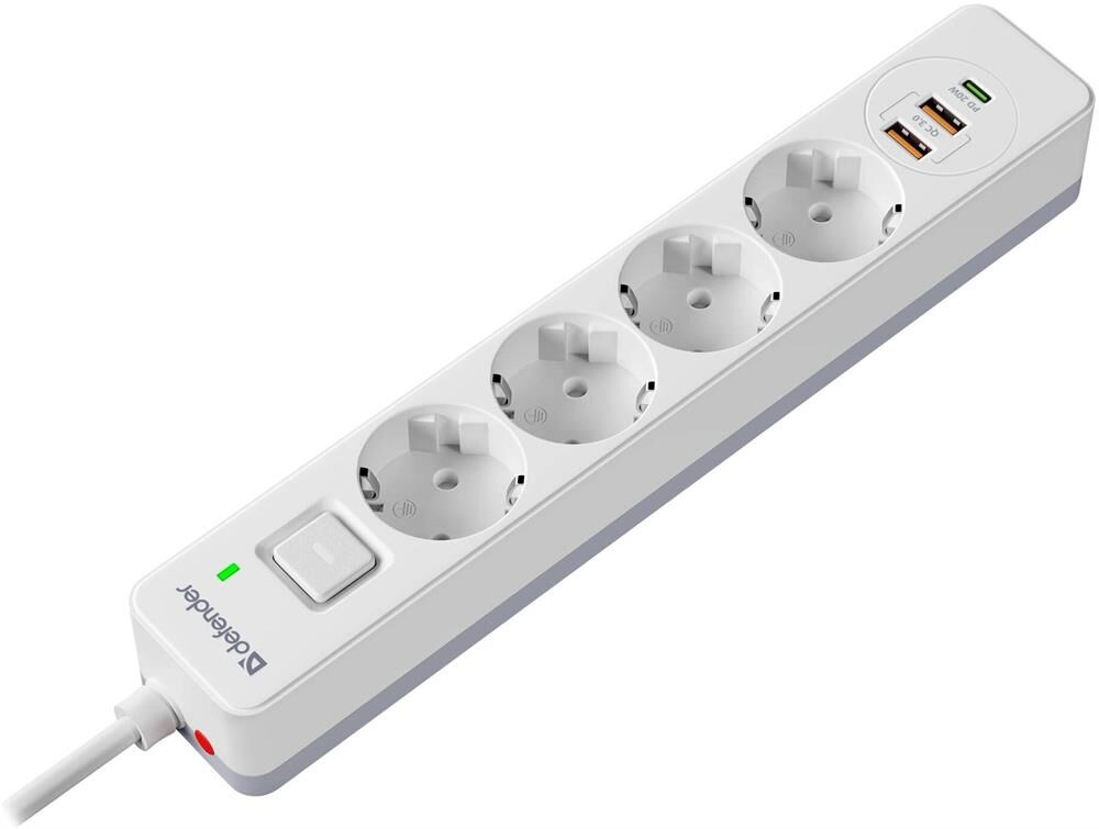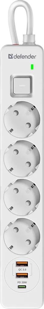 DEFENDER Сетевой фильтр DFS 143, 2м, белый [99434]