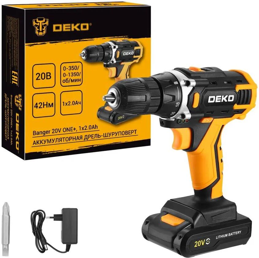 DEKO Аккумуляторная дрель-шуруповерт Banger 20V ONE+, 1x2.0Ач