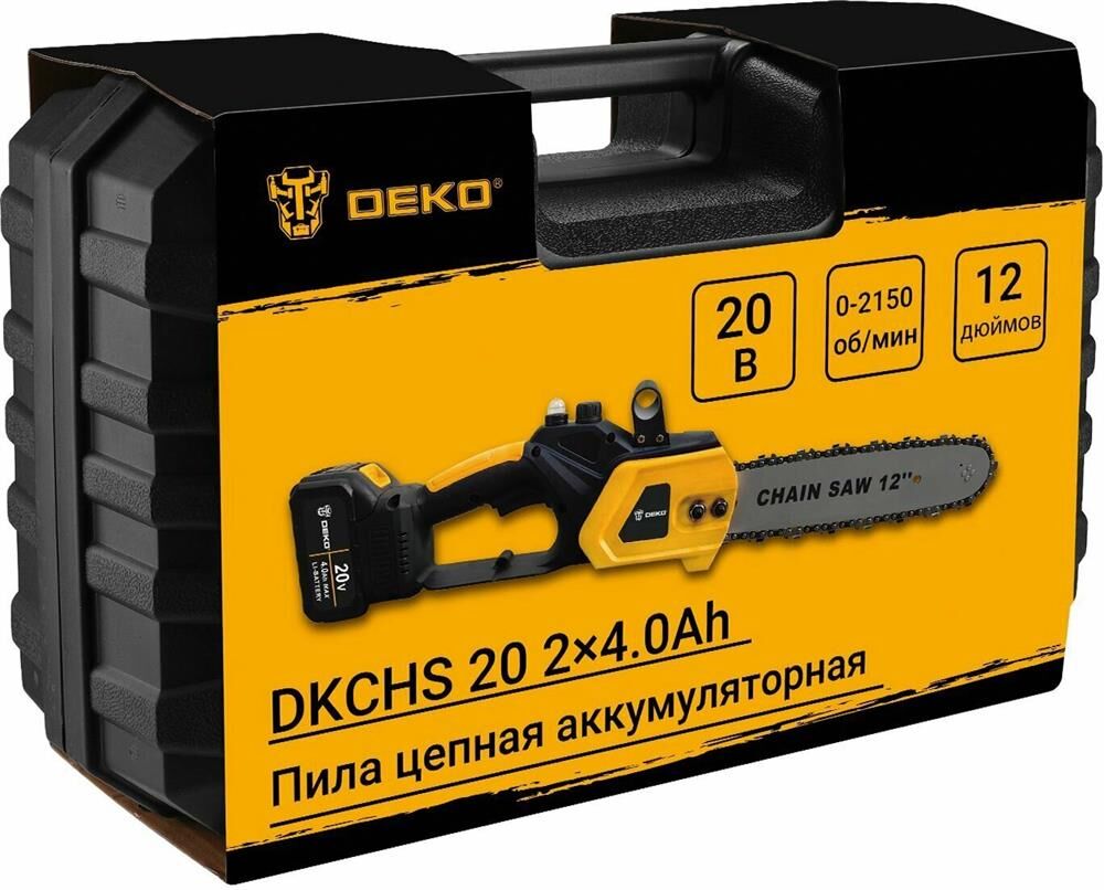 DEKO Цепная пила DKCHS 20-12 аккум. дл.шины:12" (30cm) 1аккум. 5Ач ЗУ (085-2001)