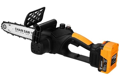 Напряжение АКБ: 20 В Емкость АКБ: 4000 мАч Длина шины: 10 дюймов Число оборотов: 0-2150 об/мин Емкость масляного бака: 75 мл Бесключевое натяжение цепи: нет Защита от перегрева: да Пила поставляется в частично разобранном виде: Пила - 1 шт Шина - 1 шт Цепь - 1 шт Защитный щиток - 1 шт Дополнительная рукоятка - 1 шт АКБ - 1 шт В комплекте: Зарядное устройство - 1 шт Отвертка - 1 шт Торцевой ключ - 1 шт Руководство по эксплуатации - 1 шт