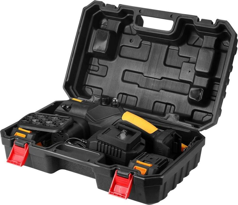 Напряжение АКБ: 20 В Емкость АКБ: 4000 мАч Длина шины: 12 дюймов Число оборотов: 0-2150 об/мин Диаметр реза: 28 см Бесключевое натяжение цепи: нет Емкость масляного бака: 75 мл Защита от перегрева: да Пила поставляется в частично разобранном виде: Пила - 1 шт Шина - 1 шт Цепь - 1 шт АКБ - 2 шт Дополнительная рукоятка - 1 шт В комплекте: Защитный щиток - 1 шт Зарядное устройство - 1 шт Отвертка - 1 шт Торцевой ключ - 1 шт Руководство по эксплуатации - 1 шт