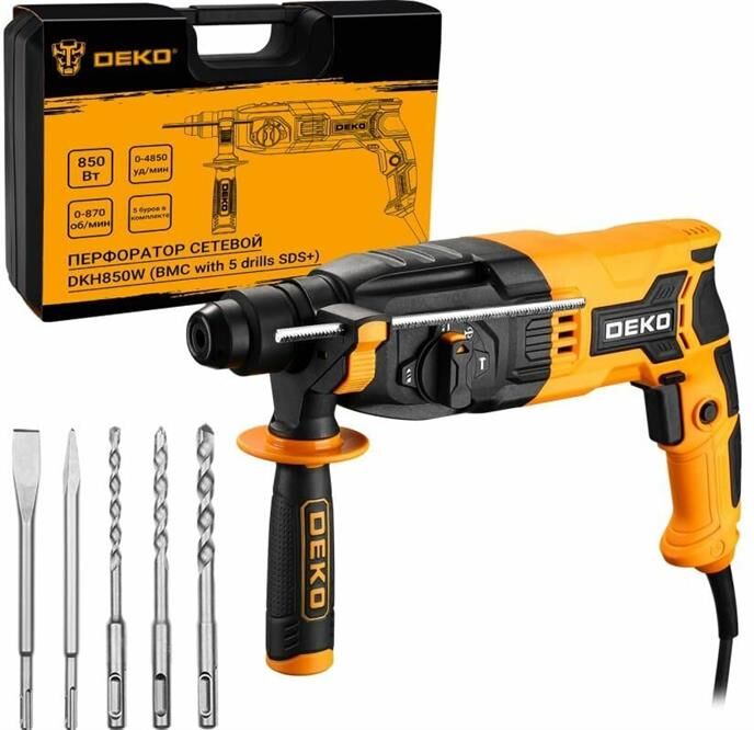 Напряжение/Частота: 230В / 50Гц Мощность: 850Вт Частота ударов: 0-4850 уд/мин Сила удара: 3Дж Частота вращения: 0-870 об/мин Длина кабеля - 2 м Комплектация 1шт перфоратор 1шт глубиномер 2шт угольные щетки 1шт руководство по эксплуатации