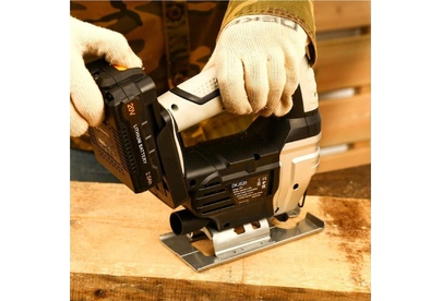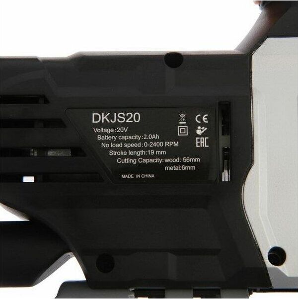 Напряжение 20 В. Емкость аккумулятора 2 Ач. Скорость холостого хода 0-2400 об/мин. Ход пилки 19 мм. Макс. глубина реза дерева 56 мм. Макс. глубина реза металла 6 мм.