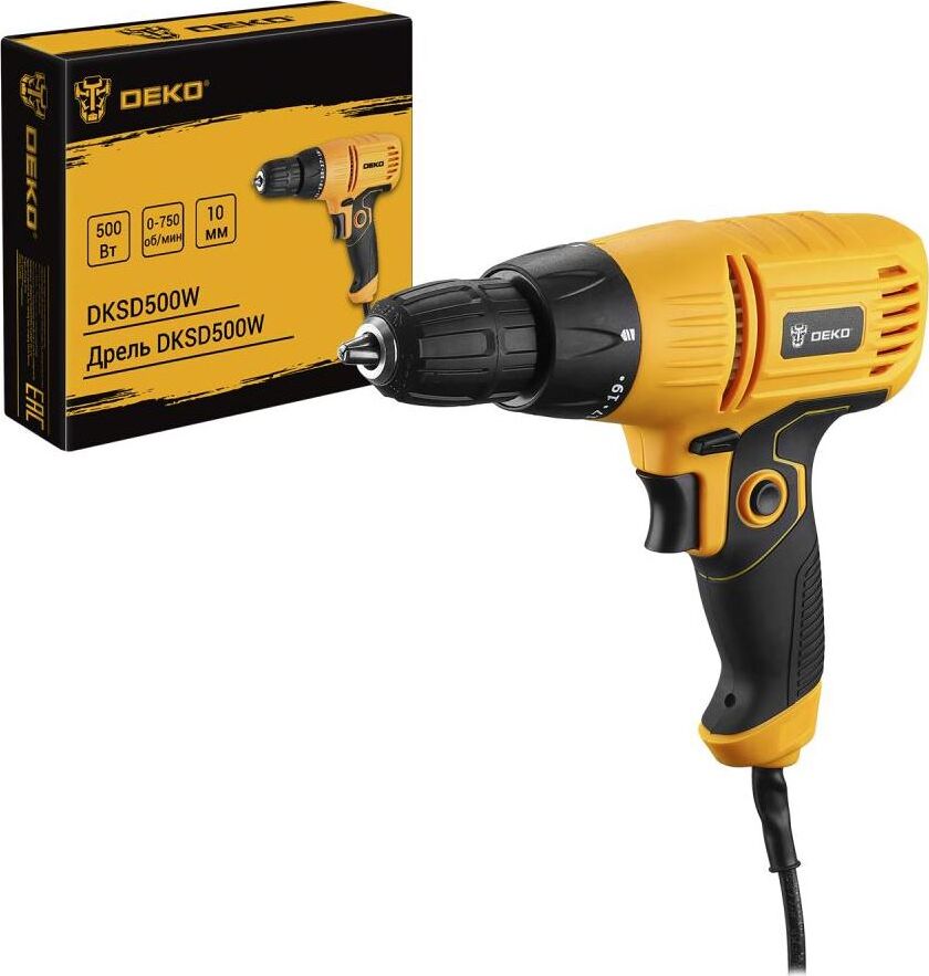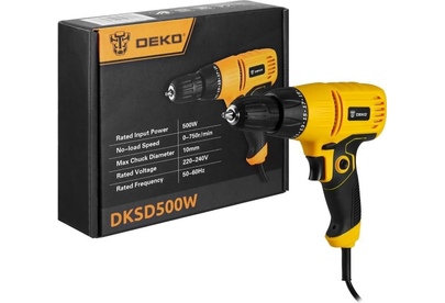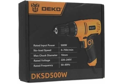 Дрель DEKO DKSD500W идеально подойдёт для сверления деревянных и металлических поверхностей. Устройство очень легкое и его удобно держать в руке, что, несомненно, облегчает работу. Технические характеристики Общие характеристики Тип инструмента безударная дрель Питание от сети Тип двигателя щеточный Тип патрона быстрозажимной Напряжение, В 220-240 Макс. диаметр патрона, мм 10 Количество скоростей работы 1 Макс. обороты, об./мин 0-750 Макс. крутящий момент, Нм 28 Мощность, Вт 500 Диаметр сверления, мм 0-13 Функции и возможности Наличие подсветки нет Наличие удара нет Наличие реверса есть Поддержание постоянных оборотов под нагрузкой нет Дополнительная информация Вес, кг 1,19 Поставляется в коробке