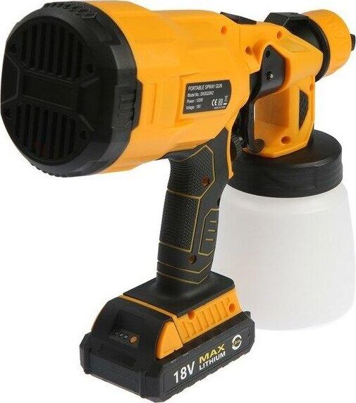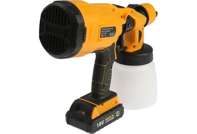 Краскопульт аккумуляторный DEKO DKSG20K2 используется для обработки поверхности водно-меловыми и водно-известковыми составами при строительно-отделочных работах, при опрыскивании и побелке садов, дезинфекции помещений. Мощность 120 Вт. Частота 50-60 Гц. Напряжение 20 В. Скорость 30000 об/мин. Емкость батареи 2000 мАч. Расход воздуха 160 л/мин. Расход краски 100-200 мл/мин. Объем 800 мл. Диаметр сопла 1мм, 1,8мм, 2.5мм . Максимальная вязкость 70 DIN.