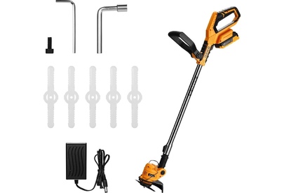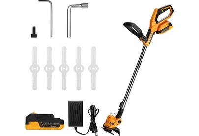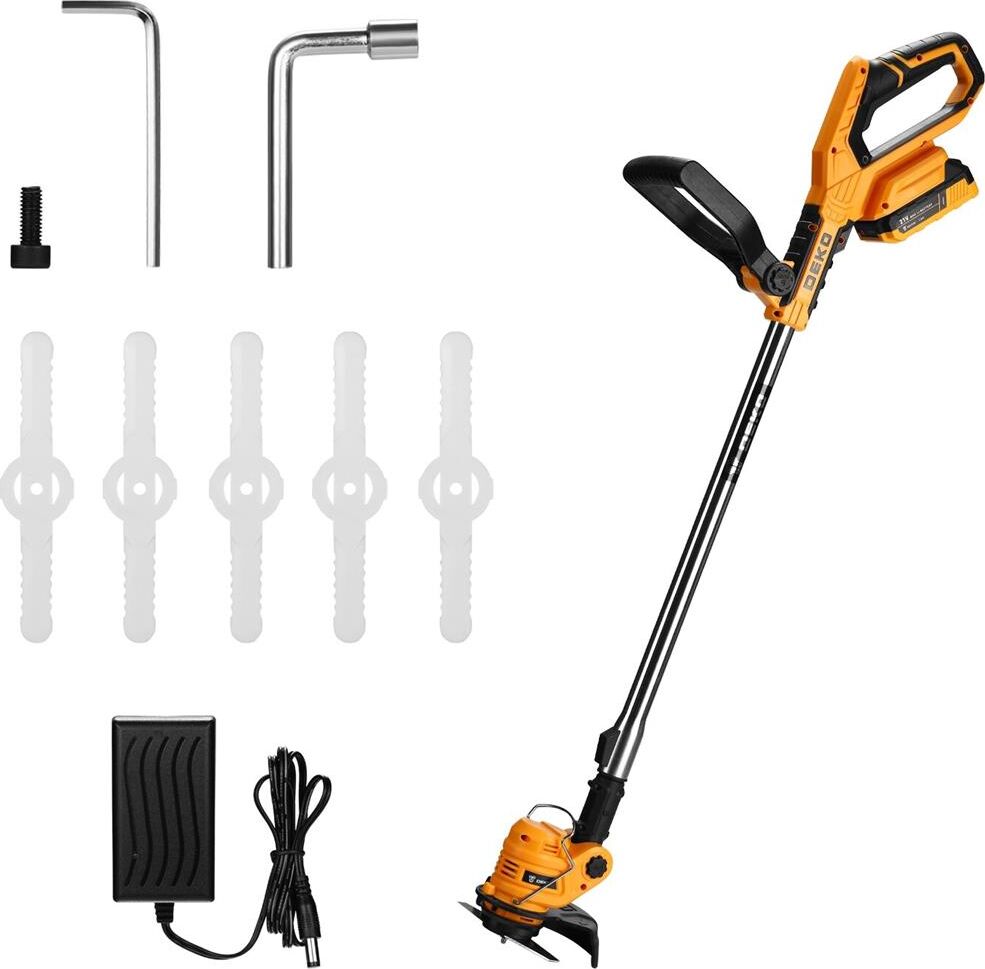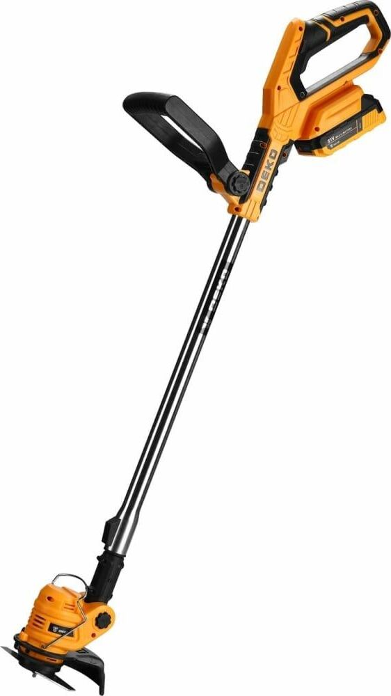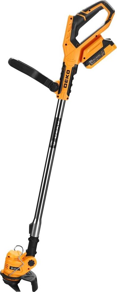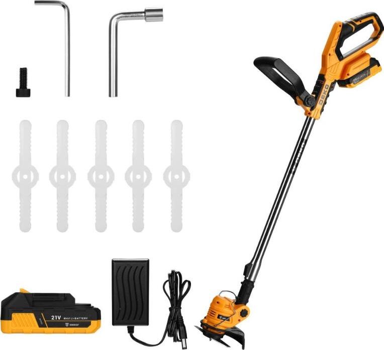 Триммер садовый аккумуляторный DEKO DKTR21 совместим с аккумуляторами Makita 18 В Li-Ion тип BL-1830, BL-1840, BL-1850, BL-1860. *Аккумулятор MAKITA в комплект не входит. Технические характеристики: Напряжение аккумулятора: 21 В. Мощность: 350 Вт. Скорость холостого хода: 11000 об/мин. Емкость аккумулятора: 1500 мАч. Диаметр лезвия: 14,5 см.