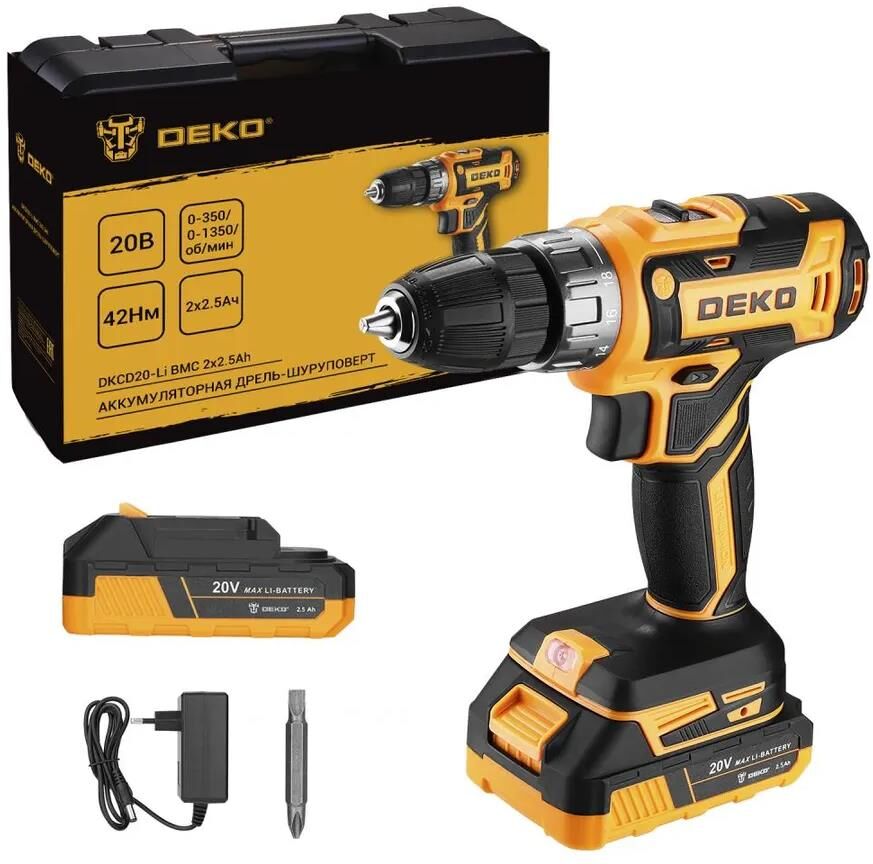 DEKO Дрель-шуруповерт аккумуляторная DKCD20-Li в кейсе, 20В, 2х2.5Ач