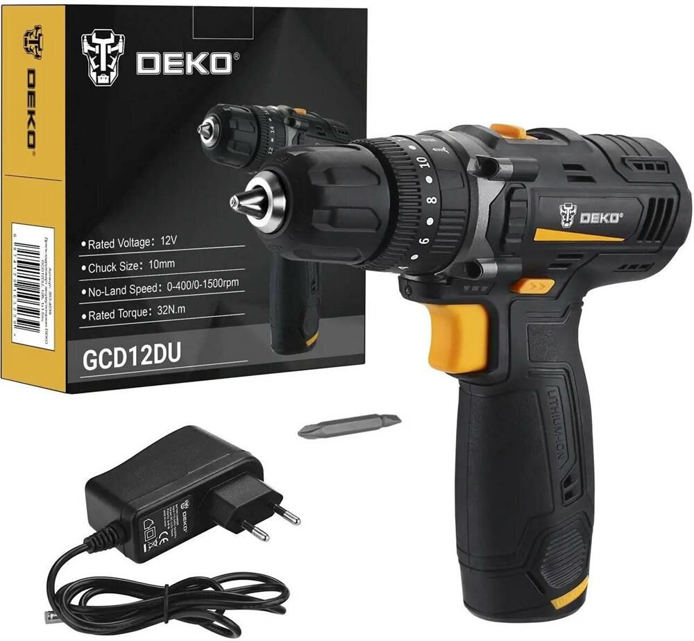 DEKO GCD12DU SET4 в кейсе + оснастка 13 шт, 12В, 2x2.0Ач 063-4038