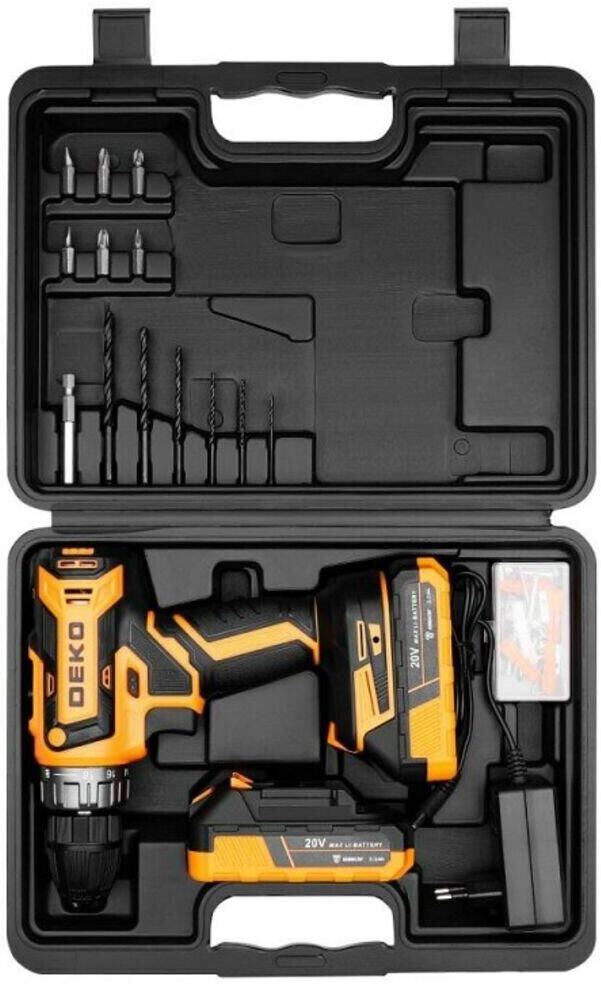 DEKO GCD20DU PRO в кейсе + набор 63 инструмента для дома, 20В, 2х3.0Ач 083-1039