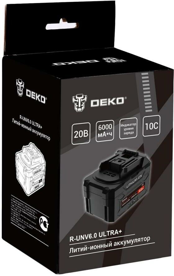DEKO R-UNV6.0 ULTRA+, Li-ion, 20В, 6.0А*ч, с повышенной токоотдачей 083-1019