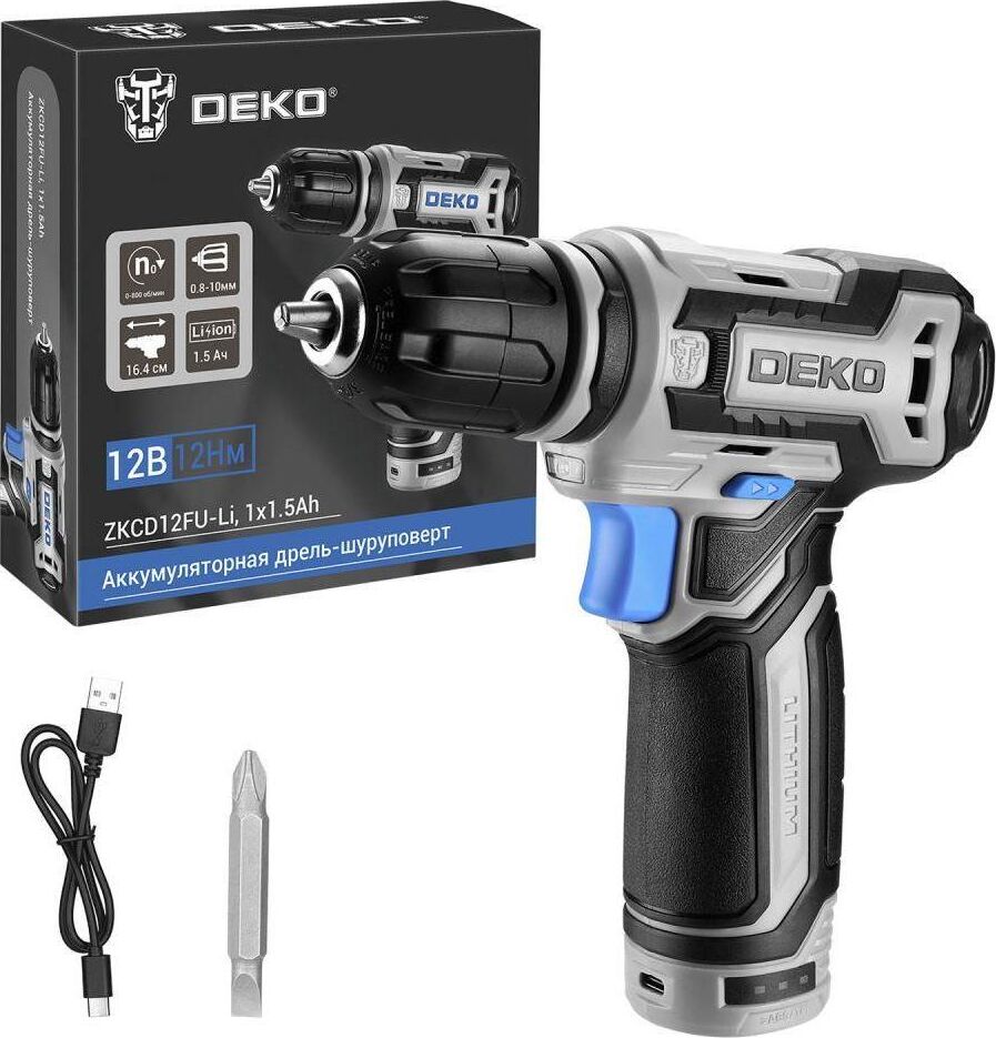 Аккумуляторная дрель-шуруповерт DEKO ZKCD12FU-Li используется при строительных, слесарно-монтажных работах. Помогает быстро высверливать отверстия нужного диаметра как на деревянной, так и металлической поверхности, быстро вкручивать или извлекать крепеж.Облегченная конструкция и прорезиненная ручка создают приятные ощущения, а дизайну эргономику. Фонарик эффективно освещает в темноте. Модель оснащена переключателем для прямого и реверсивного вращения.
