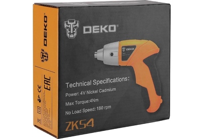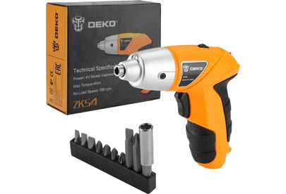 DEKO ZKS4, 4В, 0.6 Ач, з/у с набором оснастки 10 шт, 4 Нм 063-4113