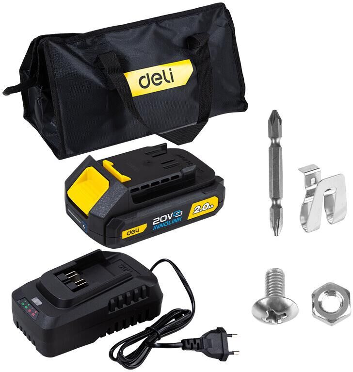 DELI Дрель-шуруповерт аккумуляторная DC120 (2 АКБ*2Ач+ЗУ, 20В, 45Нм, сумка)