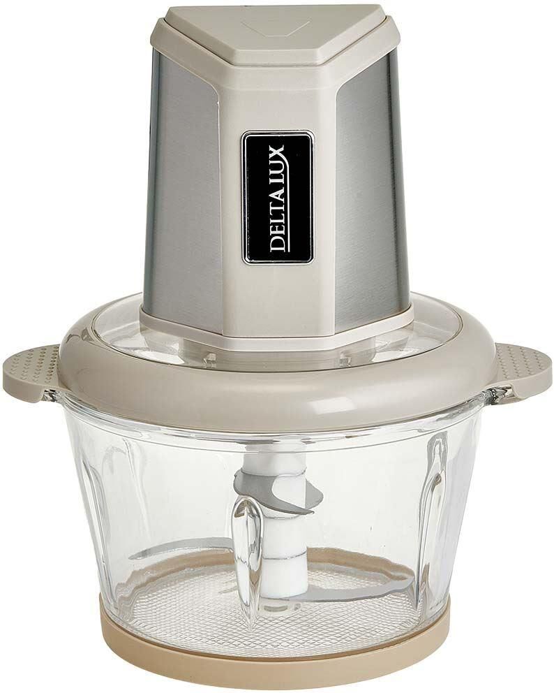 Измельчитель, Мощность 800 Вт, Потребляемая мощность: 250 Вт, Объем чаши: 2 литра, Стеклянная чаша ( Возможность мытья чаши в посудомоечной машине), Противоскользящая подставка, Двойной ножевой блок: 4 ножа из нержавеющей стали со специальной заточкой лезвий, Защитные крышки ножей для безопасного хранения, 2 скорости работы, Автоматическая блокировка при неправильной установке, Защита от перегрева, Цвет: бежевый.
