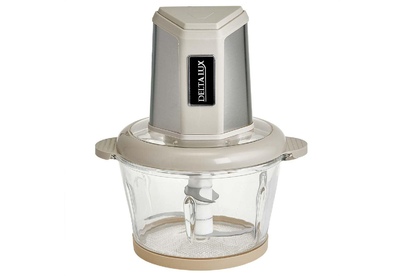Измельчитель, Мощность 800 Вт, Потребляемая мощность: 250 Вт, Объем чаши: 2 литра, Стеклянная чаша ( Возможность мытья чаши в посудомоечной машине), Противоскользящая подставка, Двойной ножевой блок: 4 ножа из нержавеющей стали со специальной заточкой лезвий, Защитные крышки ножей для безопасного хранения, 2 скорости работы, Автоматическая блокировка при неправильной установке, Защита от перегрева, Цвет: бежевый.