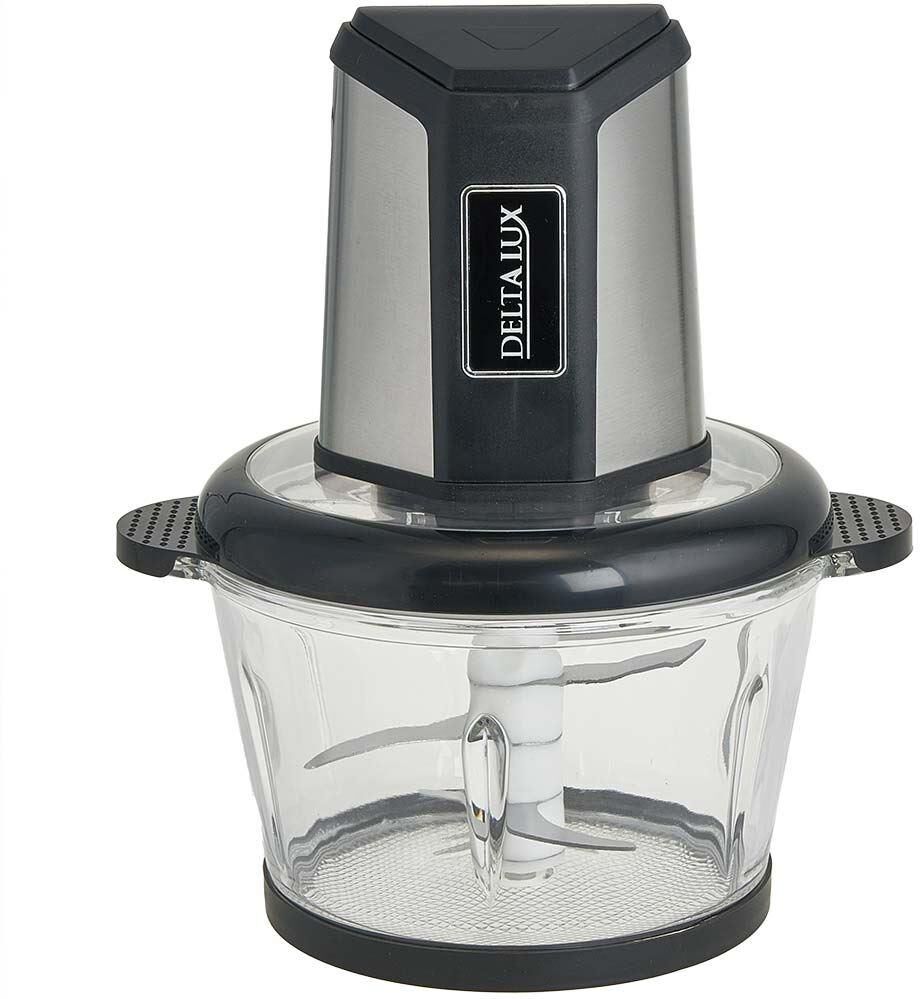 Измельчитель, Мощность 800 Вт, Потребляемая мощность: 250 Вт, Объем чаши: 2 литра, Стеклянная чаша ( Возможность мытья чаши в посудомоечной машине), Противоскользящая подставка, Двойной ножевой блок: 4 ножа из нержавеющей стали со специальной заточкой лезвий, Защитные крышки ножей для безопасного хранения, 2 скорости работы, Автоматическая блокировка при неправильной установке, Защита от перегрева, Цвет: черный.