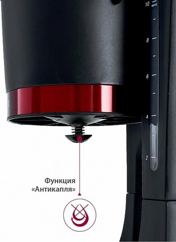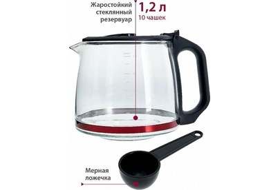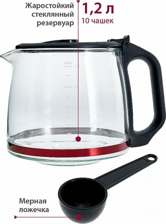 Мощность 680Вт. Вместимость 10 чашек. Корпус из высококач. пластика. Жаростойкий стекл. резервуар д/кофе. Шкала уровня воды. Свет. индикатор работы.Функция Антикапля. Система поддержания температуры. Защита от перегрева.